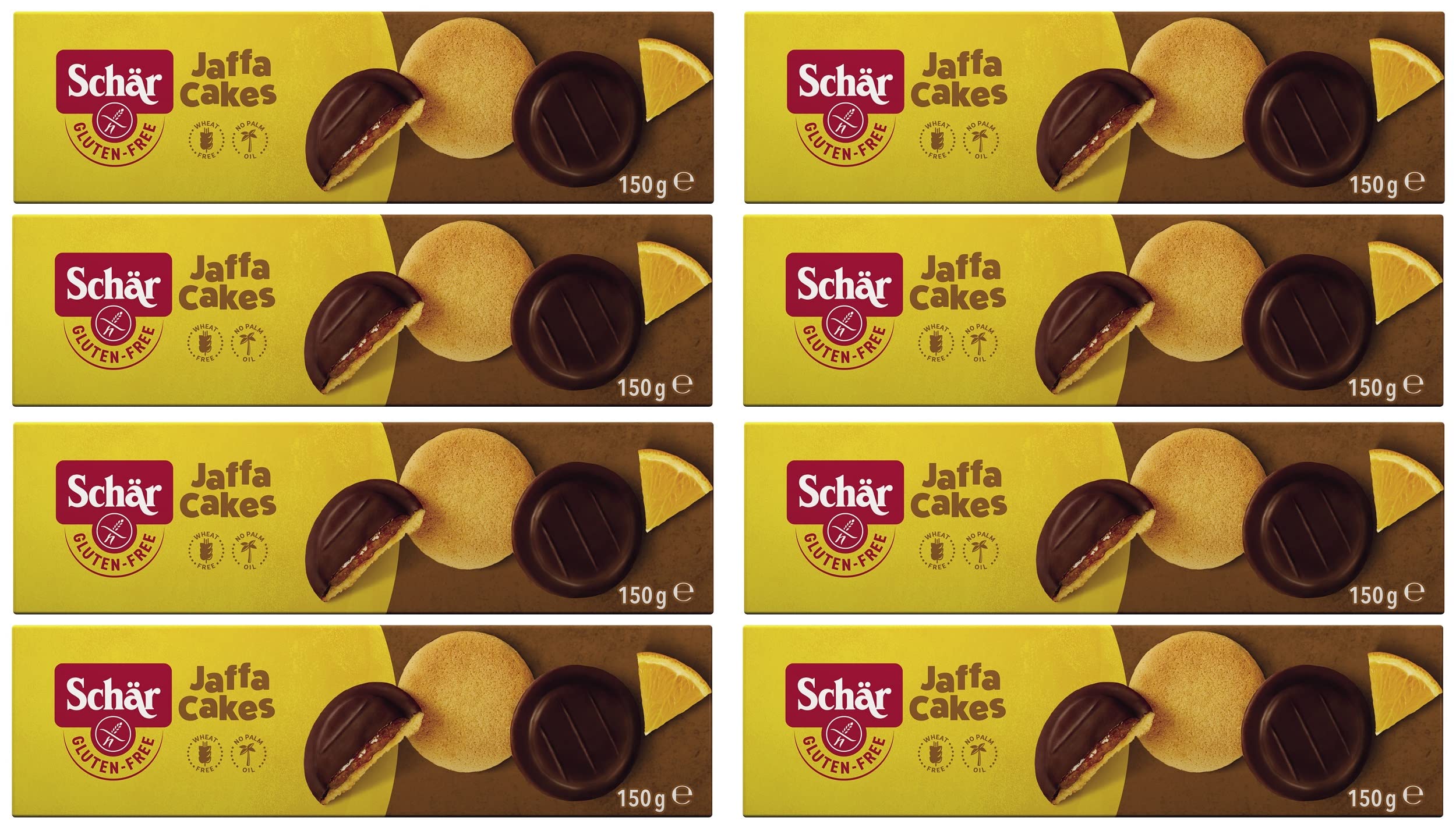 These Gluten Free Jaffa Schar Cakes are a wonderful treat for your morning cup of tea. Enjoy this tasty classic without worrying about gluten. Made from corn and potato starch with a delicious orange filling and topped with chocolate. A soft, textured gluten-free treat. Each pack of Schar Gluten Free Jaffa Cakes contains 12 delicious Jaffa Cakes which should last you around ten minutes as they are so tasty. We make these Gluten Free Jaffa Schar Cakes using all natural ingredients to a very high standard so you get all the taste without any allergens. This box of eight allows you to purchase these Schär Gluten Free Jaffa Cakes in bulk so you always have a supply of your soon to be favorite gluten free snack. INGREDIENTS sugar, chocolate 15 (sugar, cocoa mass , cocoa fat , emulsifiers: sunflower lecithin, E 476 flavor), water, glucose-fructose syrup, pasteurized egg mass, corn flour, potato starch, humectant: glycerol, soy flour, concentrated orange juice 2.6 , maltodextrin, acidity regulators: citric: acid, E 33 1 risers: ammonium bicarbonate, disodium diphosphate, sodium bicarbonate gelling agent: pectin concentrated apple juice, flavors, salt, rapeseed oil, color: annatto. May contain traces of hazelnuts and milk. Wheat free.This box of eight allows you to buy these Schär gluten-free cakes in bulk so you always have a supply of your favorite gluten-free snack. We make these gluten-free Schär cakes from natural ingredients to a very high standard so you can get all the taste without the allergens. Each pack of gluten-free Jaffa cakes contains 12 delicious Jaffa cakes, which should last about ten minutes as they are so tasty. Made from corn and potato starch with a delicious orange filling and topped with chocolate. A soft, textured, gluten-free treat. These Schar gluten-free Jaffa cakes are a wonderful treat for your morning cuppa. Enjoy this tasty classic without worrying about gluten. Ces gâteaux Jaffa sans gluten Schar sont un merveilleux régal pour votre tasse de thé du matin. Profitez de ce savoureux classique sans vous soucier du gluten. Fabriqué à partir de maïs et d'amidon de pomme de terre avec une délicieuse garniture à l'orange et garni de chocolat. Une gâterie douce et texturée sans gluten. Chaque paquet de gâteaux Jaffa sans gluten Schar contient 12 délicieux gâteaux Jaffa qui devraient vous durer environ dix minutes car ils sont très savoureux. Nous fabriquons ces gâteaux Jaffa sans gluten Schar à partir de tous les ingrédients naturels à un niveau très élevé afin que vous obteniez tout le goût sans aucun allergène. Cette boîte de huit vous permet d'acheter ces gâteaux Jaffa sans gluten Schär en vrac afin que vous ayez toujours un approvisionnement de votre collation sans gluten bientôt préférée. INGRÉDIENTS sucre, chocolat 15 (sucre, masse de cacao , graisse de cacao , émulsifiants : lécithine de tournesol, E 476 saveur), eau, sirop de glucose-fructose, masse d'œuf pasteurisée, farine de maïs, amidon de pomme de terre, humectant : glycérol, farine de soja, jus d'orange concentré 2,6 , maltodextrine, régulateurs d'acidité : citrique : acide, E 33 1 élévateurs : bicarbonate d'ammonium, diphosphate disodique, bicarbonate de sodium gélifiant : pectine jus de pomme concentré, arômes, sel, huile de colza, couleur : annatto. Peut contenir des traces de noisettes et de lait. Sans blé.Cette boîte de huit vous permet d'acheter ces gâteaux sans gluten Schär en vrac afin que vous ayez toujours un approvisionnement de votre collation préférée sans gluten. Nous fabriquons ces gâteaux Schar sans gluten à partir d'ingrédients naturels à un très haut niveau afin que vous puissiez obtenir tout le goût sans allergènes. Chaque paquet des gâteaux Jaffa sans gluten contient 12 délicieux gâteaux Jaffa qui devraient durer environ dix minutes car ils sont très savoureux. Fabriqué à partir d'amidon de maïs et de pomme de terre avec une délicieuse garniture d'orange et surmonté de chocolat. Une friandise texturée douce sans gluten. Ces gâteaux Jaffa sans gluten Schar sont un merveilleux plaisir pour votre tasse de thé du matin. Profitez de ce classique savoureux sans vous soucier du gluten.
