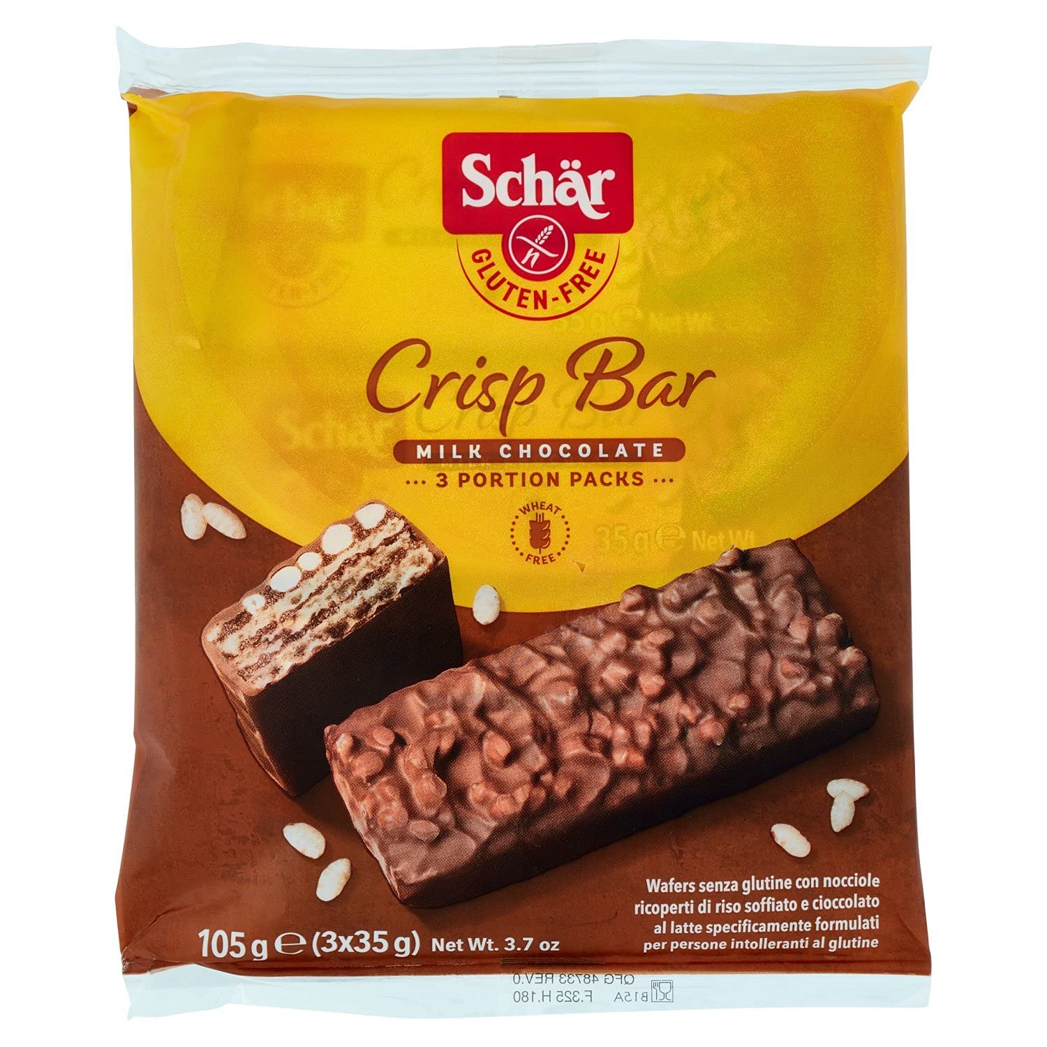 Sch r Schar Crisp Bar Crisp Bar Waffles with Hazelnuts Covered with Puffed Rice and Milk Chocolate Gluten Free 3 x 35g Snacks + Polpa Italian Gourmet 400g (14.1oz)