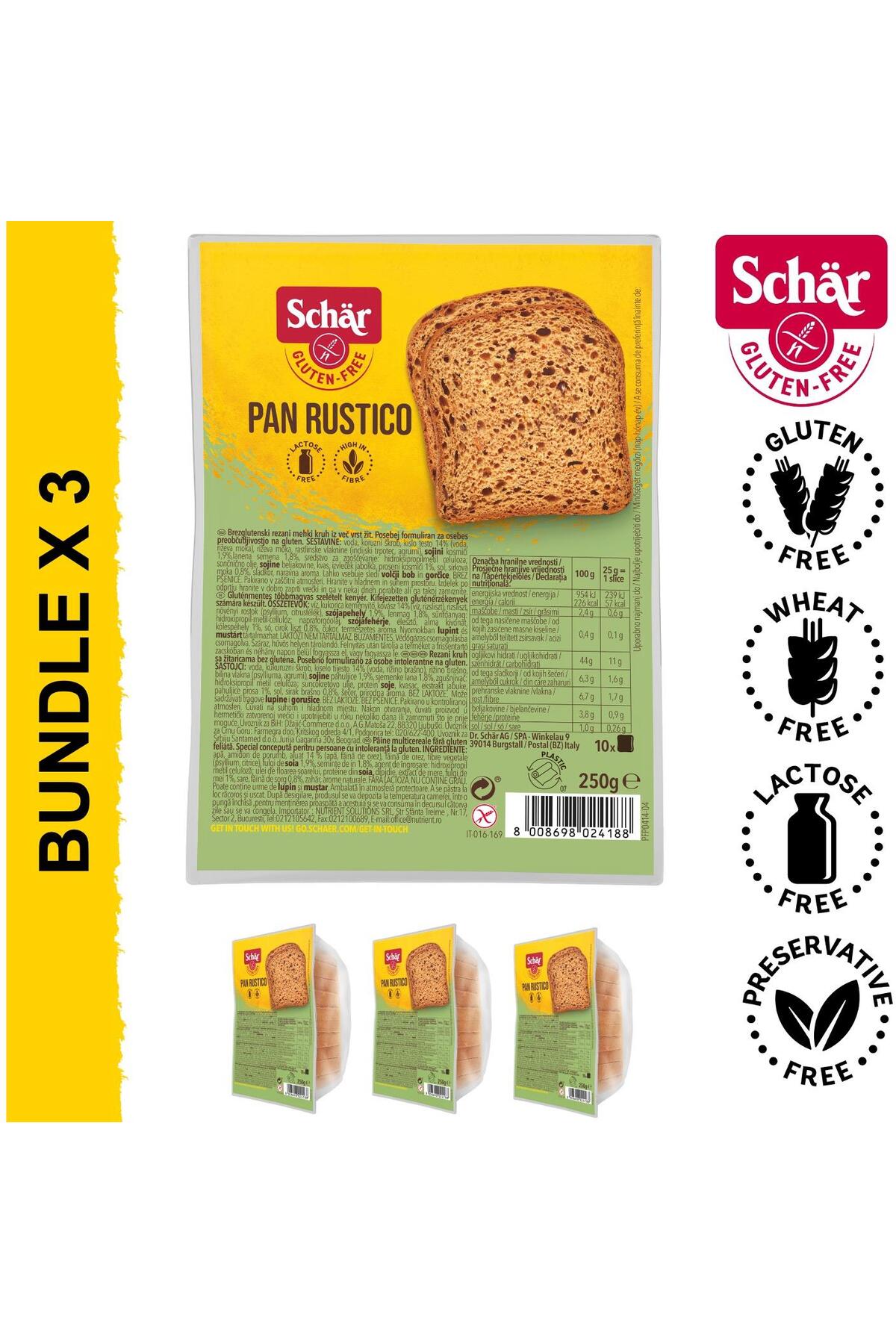 Schar Pan Rustico Gluten Free Fibrous Bread 250 gr 3 Pieces