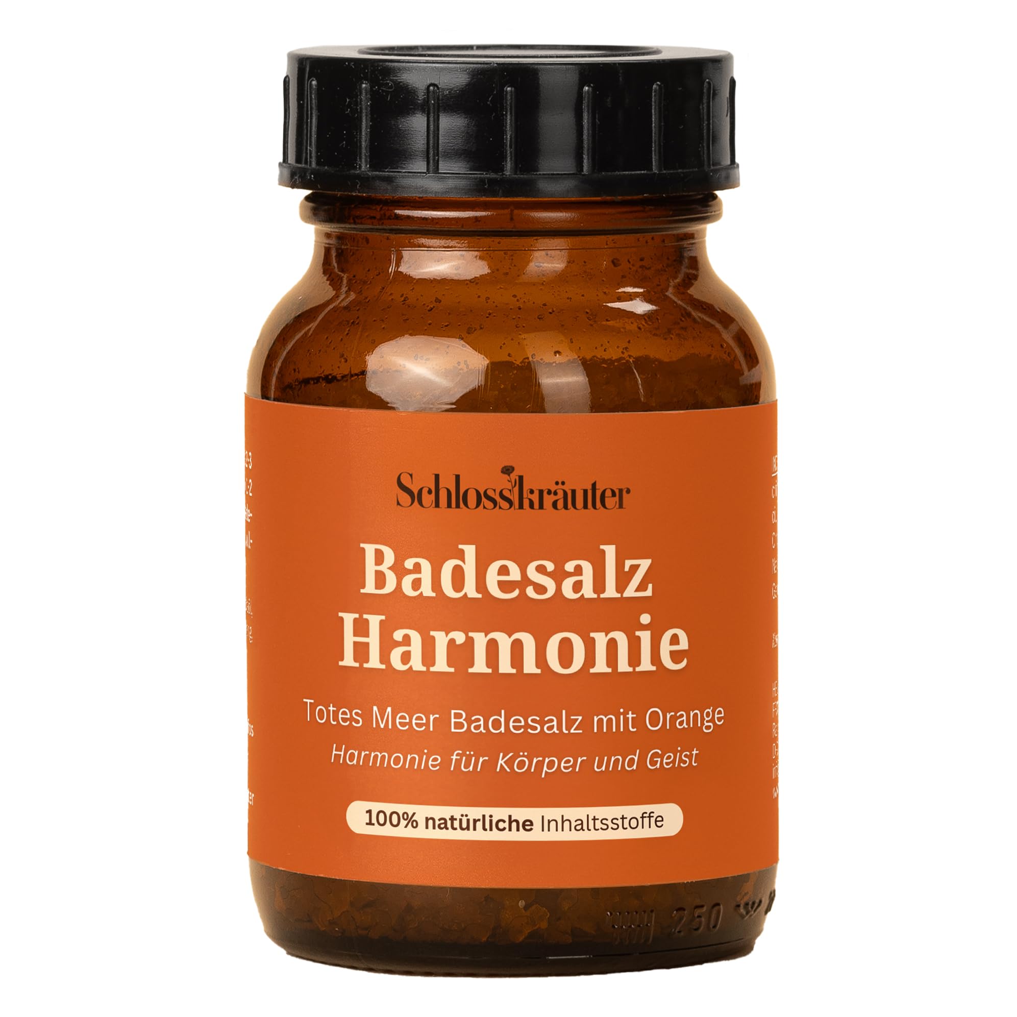Schlosskräuter Harmony Bath Salts - 200g - 100 natural ingredients according to the original recipe by pharmacist Anja Heinz with Dead Sea salt, jojoba oil, and essential oils INGREDIENTS Dead Sea salt, jojoba oil, ether. Orange, ylang-ylang, and rosewood oils INSTRUCTIONS FOR USE For adults: 2 to 3 tablespoons. For children 3 years and older: add 1 to 2 tablespoons to running bath water and dissolve completely. See more100 Natural: We completely avoid artificial additives, fragrances, and preservatives, using only natural, premium-quality ingredients. Original Apothecary Recipe: Our bath salts are suitable for children and adults and are made according to the original recipe by pharmacist Anja Heinz. Skin Care: Our relaxing bath salts are based on Dead Sea salt and jojoba oil, leaving your skin noticeably softer. Harmony of Body and Mind: Our bath products contain soothing essential oils of orange, rosewood, and ylang-ylang. Dead Sea Salt: Our Harmony bath salts are based on a blend of Dead Sea salt, jojoba oil, and essential oils.Schlosskräuter Harmonie Sels de bain 100 naturels avec orange 200 g Bain relaxant aux huiles essentielles additif de bain pour détendre le corps et l'espritDESCRIPTION DU PRODUIT DESCRIPTION DU PRODUIT Schlosskräuter Sel de bain Harmonie - 200 g - Ingrédients 100 naturels selon la recette originale de la pharmacienne Anja Heinz avec sel de la mer Morte, huile de jojoba et huiles essentielles INGRÉDIENTS Sel de la mer Morte, huile de jojoba, éther. Huiles orange, ylang-ylang, bois de rose MODE D'EMPLOI Pour adultes 2 à 3 cuillères à soupe et les enfants à partir de 3 ans, ajoutez 1 à 2 cuillères à soupe à l'eau courante du bain et dissolvez complètement. Voir plus100 naturel : nous renonçons complètement aux additifs artificiels, aux parfums et aux conservateurs et utilisons uniquement des ingrédients naturels et de qualité supérieure. Recette originale apothèque : nos sels de bain conviennent aux enfants et aux adultes et sont fabriqués selon la recette originale de la pharmacienne Anja Heinz. Soin de la peau : notre bain relaxant est basé sur une base de sel de mer mort et d'huile de jojoba qui rend votre peau sensiblement plus souple. Harmonie du corps et de l'esprit : nos produits de bain contiennent des huiles essentielles apaisantes d'orange, de bois de rose et d'ylang-ylang. Sel de la mer Morte : notre sel de bain Harmonie est basé sur un mélange de sel de mer mort, d'huile de jojoba et d'huiles essentielles.