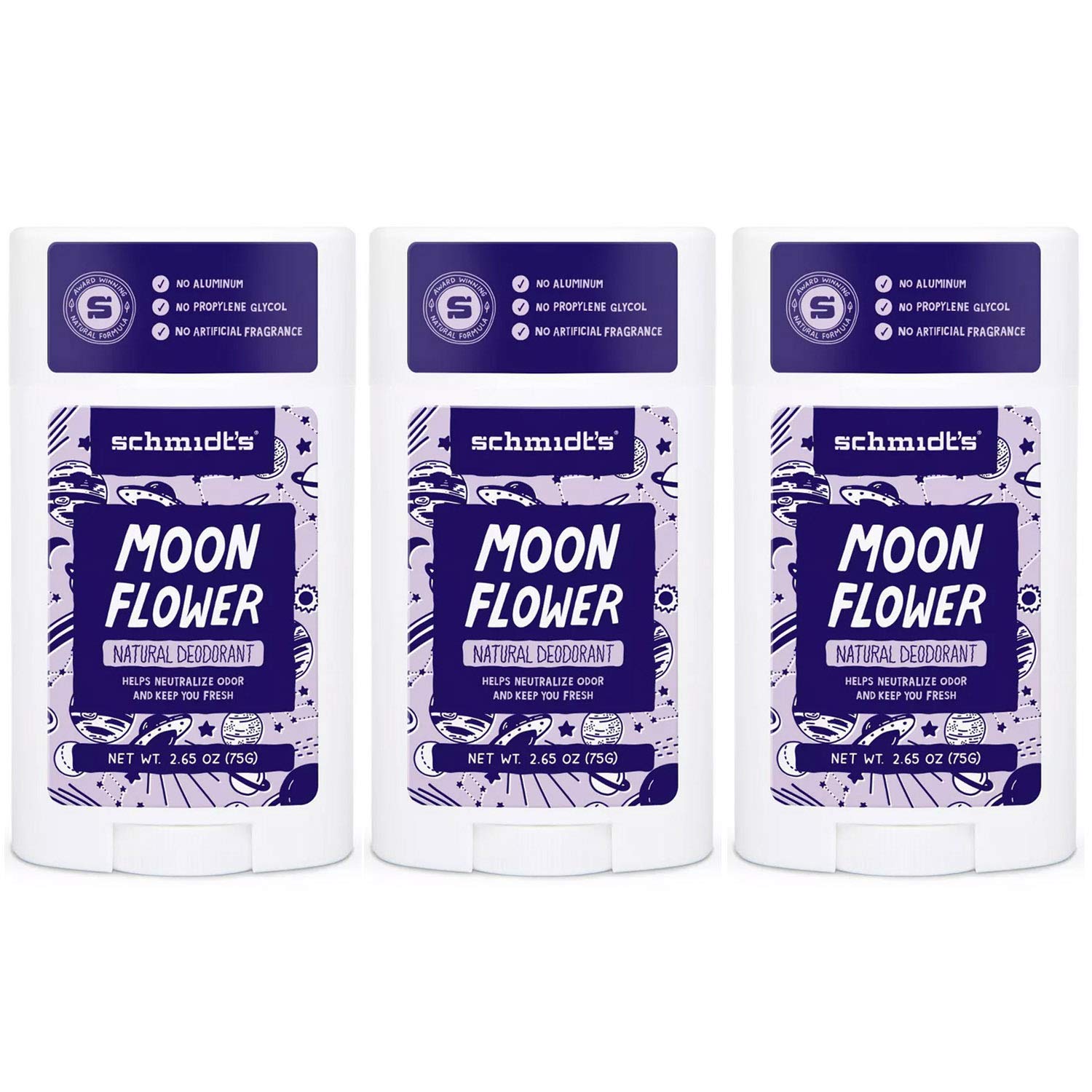 Schmidt's Moon Flower Aluminum-Free Natural Deodorant Stick - 2.65 oz (3 Pack) Moon Flower 2.65 Ounce (Pack of 3)