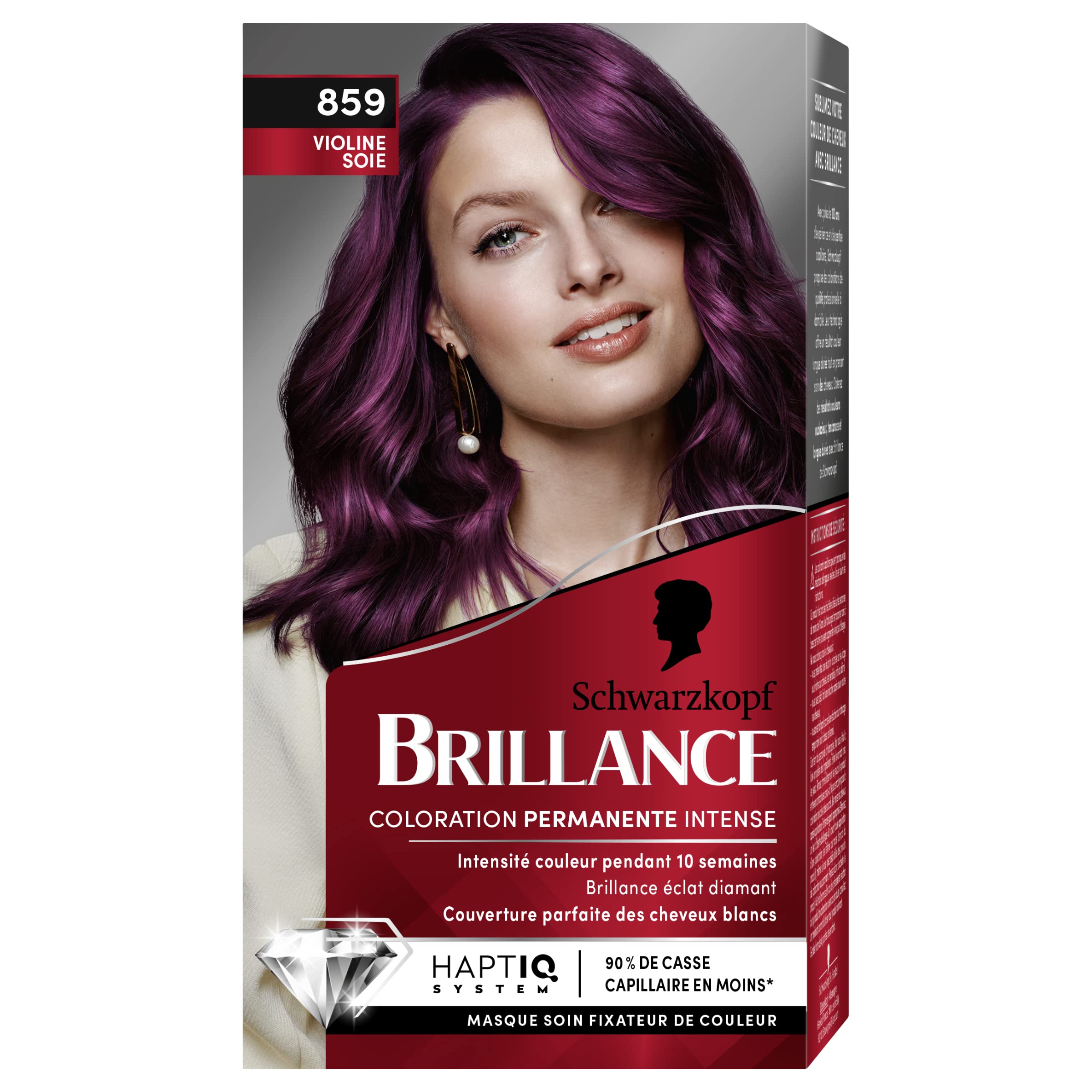 Schwarzkopf - Brillance - Coloration Cheveux Permanente Intense - Brillance Eclat Diamant - Couverture Parfaite des Cheveux Blancs - Masque Soin Fixateur - Violine Soie 859
