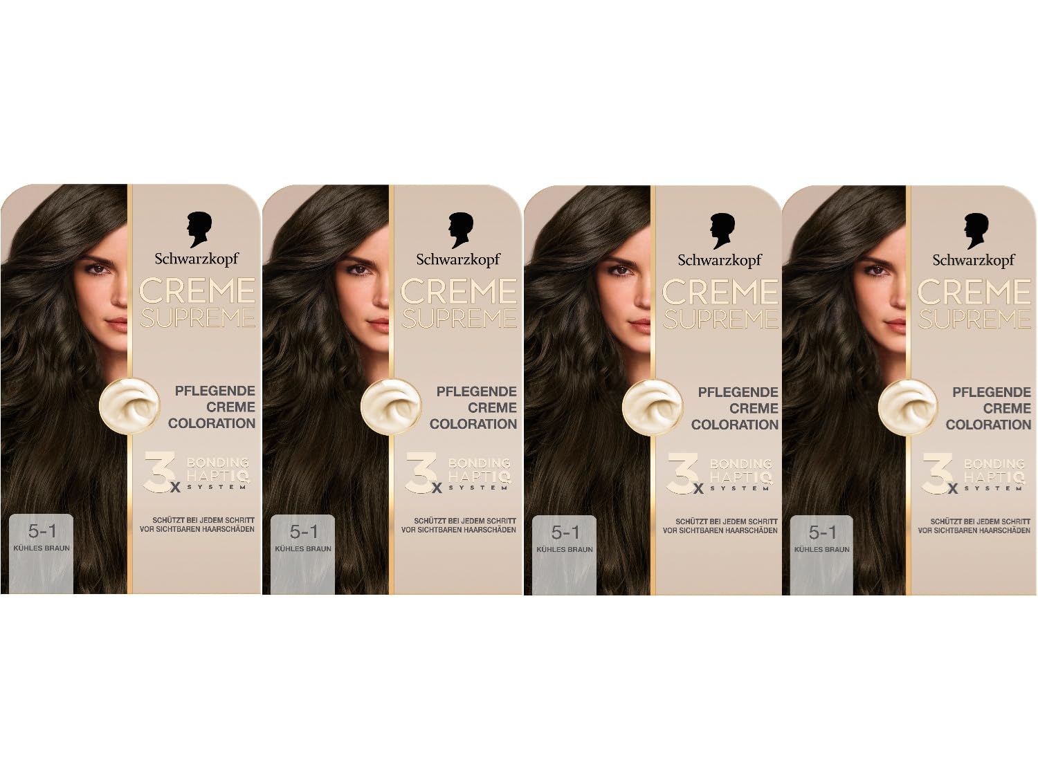 Schwarzkopf Creme Supreme Colour 5-1 Cool Brown (4 x 185 ml) permanent hair colour with serum and hair mask protects against visible damage for 100% coverage