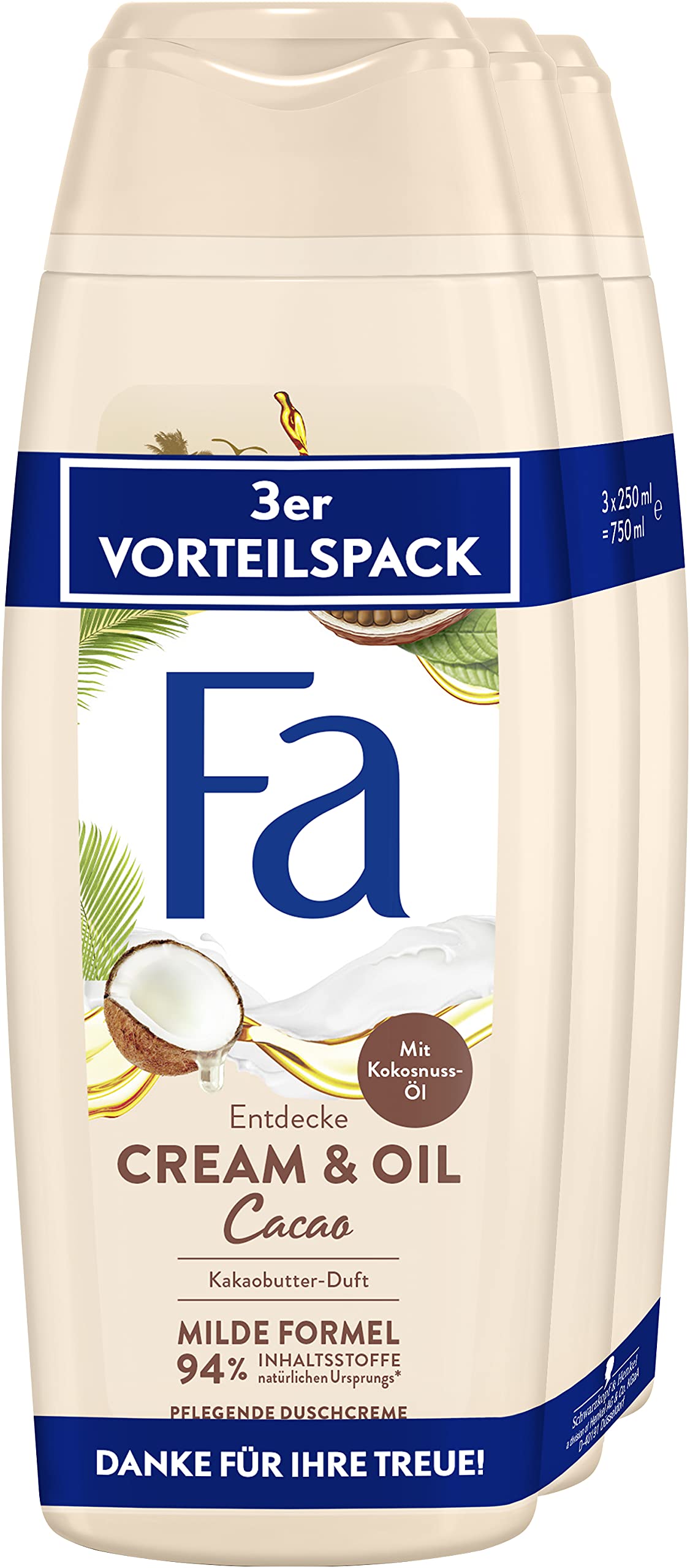 Dive into the world of Fa! Send your senses on a wonderful journey with Fa and enjoy the mild formula and the pampering scent of cocoa butter. Good for you and the planet: 25 recycled bottle (excluding cap) - 94 ingredients of natural origin (including 83 water) - 6 remains for a pleasant shower experience. INGREDIENTS aqua (water, eau) sodium laureth sulfate cocamidopropyl betaine sodium chloride glyceryl laurate cocos nucifera (coconut oil) glycol distearate disodium laureth sulfosuccinate perfume (fragrance) laureth-2 x laureth-4 prop ylene glycol Hydrogenated castor oil, PEG-7 glyceryl coat, PEG-40, hydrogenated castor oil, PEG-55, propylene glycol oleate, sodium hydroxide, citric acid, linalool, benzyl salicylate, limonene, sodium benzoate, sodium salicylate. E Benzyl All. alcohol CI 47005 CI 16035 (red 40)Ingredients: aqua (water, eau), sodium lauryl sulfate, cocamidopropyl betaine, sodium, chloride, glyceryl laurate, coconut, nucifera (coconut), oil glycol, distearate, distearate, distearate, disodium laureth sulfosuccinate perfume (fragrance), laureth-2 laureth-4 propylene glycol. genated castor oil PEG-7 glyceryl coate PEG-40 hydrogenated castor oil PEG-55 propylene glycol oleate sodium hydroxide citric acid linalool coumarin benzyl salicylate limonene sodium benzoate sodium salicylate benzyl alcohol CI 47005 CI 16035. (red 40).Fa Douchecrème Cream Oil Macadamia met de verwennende geur van cacaoboter 3, 750 ml Duik in de wereld van Fa! Stuur je zintuigen op een prachtige reis met Fa en geniet van de milde formule en de verwennende geur van cacaoboter. Goed voor jou en de planeet: 25 gerecyclede fles (exclusief dop) - 94 ingrediënten van natuurlijke oorsprong (inclusief 83 water) - 6 blijft voor een aangename douche-ervaring. INGREDIËNTEN aqua (water, eau) natriumlaureth sulfaat cocamidopropyl betaïne natriumchloride glyceryllauraat cocos nucifera (kokosolie) glycol distearaat disodium laureth sulfosuccinaat parfum (geur) laureth-2 x laureth-4 prop ylene glycol Gehydrogeneerde castorolie, PEG-7 glycerylcoat, PEG-40, gehydrogeneerde castorolie, PEG-55, propyleenglycol oleaat, natriumhydroxide, citrisch zuur, linalool, benzylsalicylaat, limoneen, natriumbenzoaat, natriumsalicylaat. E Benzyl All. alcohol CI 47005 CI 16035 (rood 40)Ingrediënten: aqua (water, eau), natriumlaurylsulfaat, cocamidopropylbetaïne, natrium, chloride, glyceryllaurat, kokos, nucifera (kokosnoot), olieglycol, distearaat, distearaat, distearaat, disodium laureth sulfosuccinaat parfum (geur), laureth-2 laureth-4 propyleenglycol. genated castorolie PEG-7 glycerylcoate PEG-40 gehydrogeneerde castorolie PEG-55 propyleenglycol oleaat natriumhydroxide citrisch zuur linalool cumarine benzyl salicylaat limoneen natriumbenzoaat natriumsalicylaat benzyl alcohol CI 47005 CI 16035. (rood 40).
