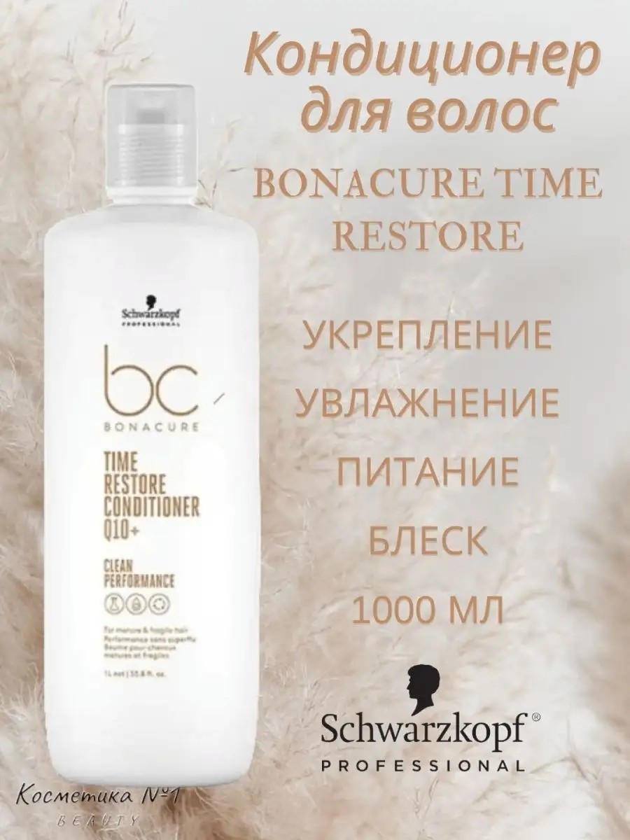 Кондиционер для волос профессиональный Bonacure Time Restore направлен на антивозрастной уход за зрелыми, ослабленными и пористыми волосами. Его насыщенный восстанавливающими и антиоксидантными компонентами состав обеспечивает этому типу локонов не только полноценное питание и омоложение, но и защиту от внешнего негативного влияния. Кондиционер мягко кондиционирует, не перегружая. Уже после первой ухаживающей процедуры локоны преображаются, разглаживаются и легче поддаются укладке и расчесыванию, не теряют драгоценную влагу во время сушки феном. Для жестких, непослушных, поврежденных прядей предлагаем смягчающий кондиционер БС Бонакур КУ10+ Тайм Рестор, обогащенных природными антиоксидантами, питательными и восстанавливающими компонентами. Специальные компоненты ухода заполняют структурные разрывы и разглаживают поверхность волос, не утяжеляя их. Каждый волос на 95% состоит из кератина, и с каждым годом естественное воспроизводство кератина снижается. Поэтому с возрастом волосы становятся слабыми, безжизненными, ломкими, сухими и нуждаются в специальном уходе. Прибавьте к этому седые волосы, которым нужно еще более интенсивное увлажнение. Бальзам гарантирует 100% прочность и эластичность, укрепляя, увлажняя и защищая волосы от истончения. Он стимулирует воспроизведение кератина и в сочетании с восстанавливающей технологией возвращает молодость волосам, придавая им плотность, мягкость и дополнительный блеск каждый день. Уникальный комплекс BC Q10+ Time Restore, обогащен Коэнзимом Q10 он мгновенно устраняет видимые признаки старения волос и стимулирует естественный синтез кератина. Обеспечивая ежедневный кондиционирующий уход за ломкими и сухими, тонкими волосами, кондиционер возвращает их к жизни, придает блеск и объем, заряжает внутренней энергией. Антивозрастной бальзам прекрасно усиливает действие шампуня, оказывая дополнительное увлажняющее и питательное действия. В результате регулярного использования ломкие, сухие и безжизненные волосы восстанавливаются изнутри, обретают жизненную силу, гладкость, сияние и мягкость, а также защиту от воздействия внешних факторов. Высокоэффективный Коэнзим Q10 в составе кондиционера для ослабленных, сухих и ломких волос, стимулируют волосяные луковицы и налаживают воспроизводство двух жизненно важных кератинов, увлажняя и смягчая волосы. Волосы становятся красивыми и здоровыми. Это средство для зрелых волос, которое используется парикмахерами для салонного ухода, а так же подходит для домашнего ухода. Предназначено для женщин, девушек и мужчин, которые хотят выглядеть стильно и ухоженно, может стать прекрасным подарком маме, подруге, любимой на день рождения, 8 марта, новый год. Уникальные свойства для волос смогут удовлетворить самые высокие требования и ожидания в области ухода за волосами. Рекомендуется использовать данный кондиционер регулярно, а для достижения максимального эффекта используйте совместно с шампунем для волос Bonacure Time Restore. Не упустите возможность получить здоровые, блестящие волосы с помощью этого уникального набора косметики!