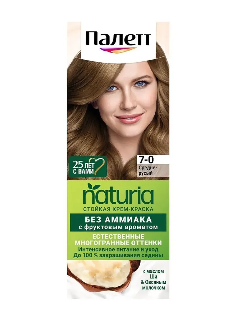 Палетт Naturia Стойкая крем-краска для волос 7-0 Средне-русый, 110 мл.