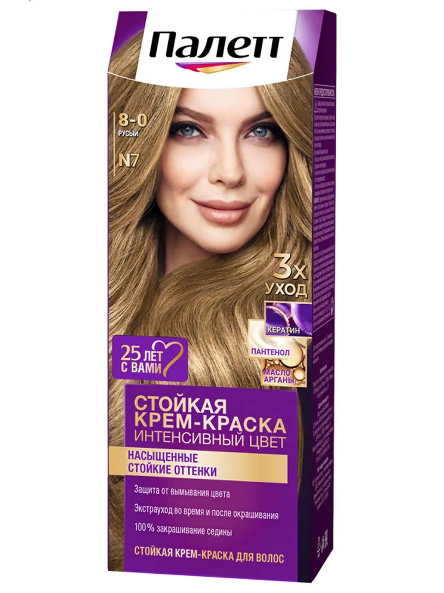 | Комплектация | Краска для волос Палетт, тон 8-0 (N-7) Русый |