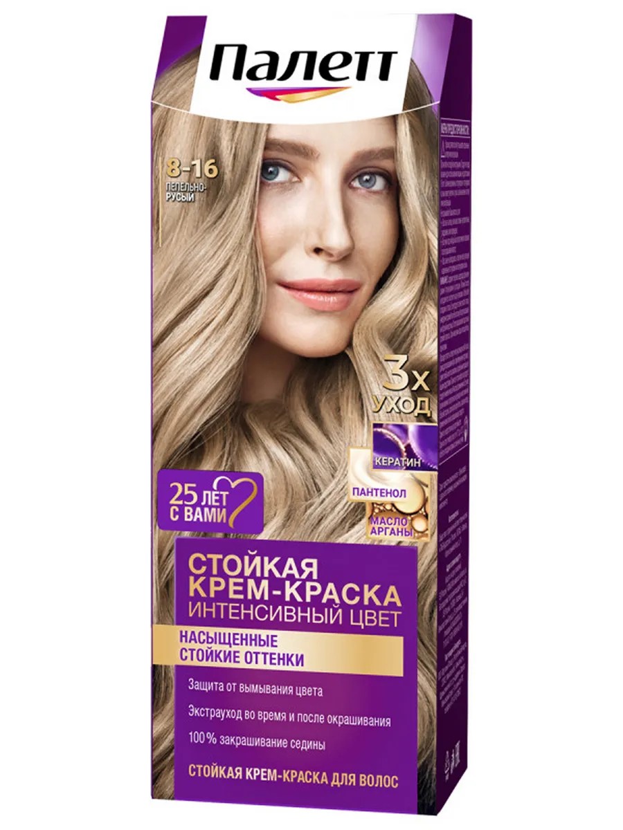 | Комплектация | Краска для волос Палетт, тон 8-16 Пепельно-русый |