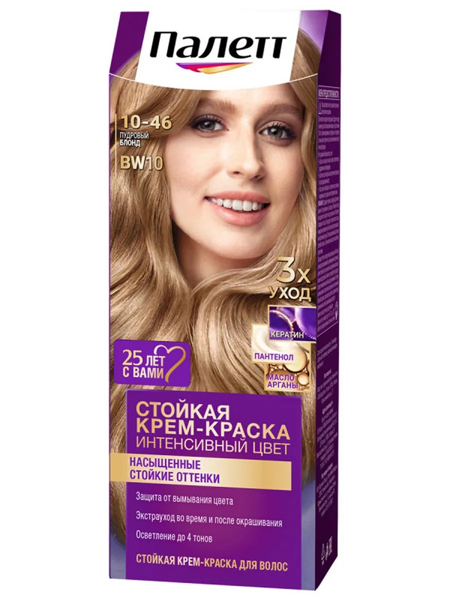 | Комплектация | Краска для волос Палетт, тон BW10 (10-46) Пудровый блонд |