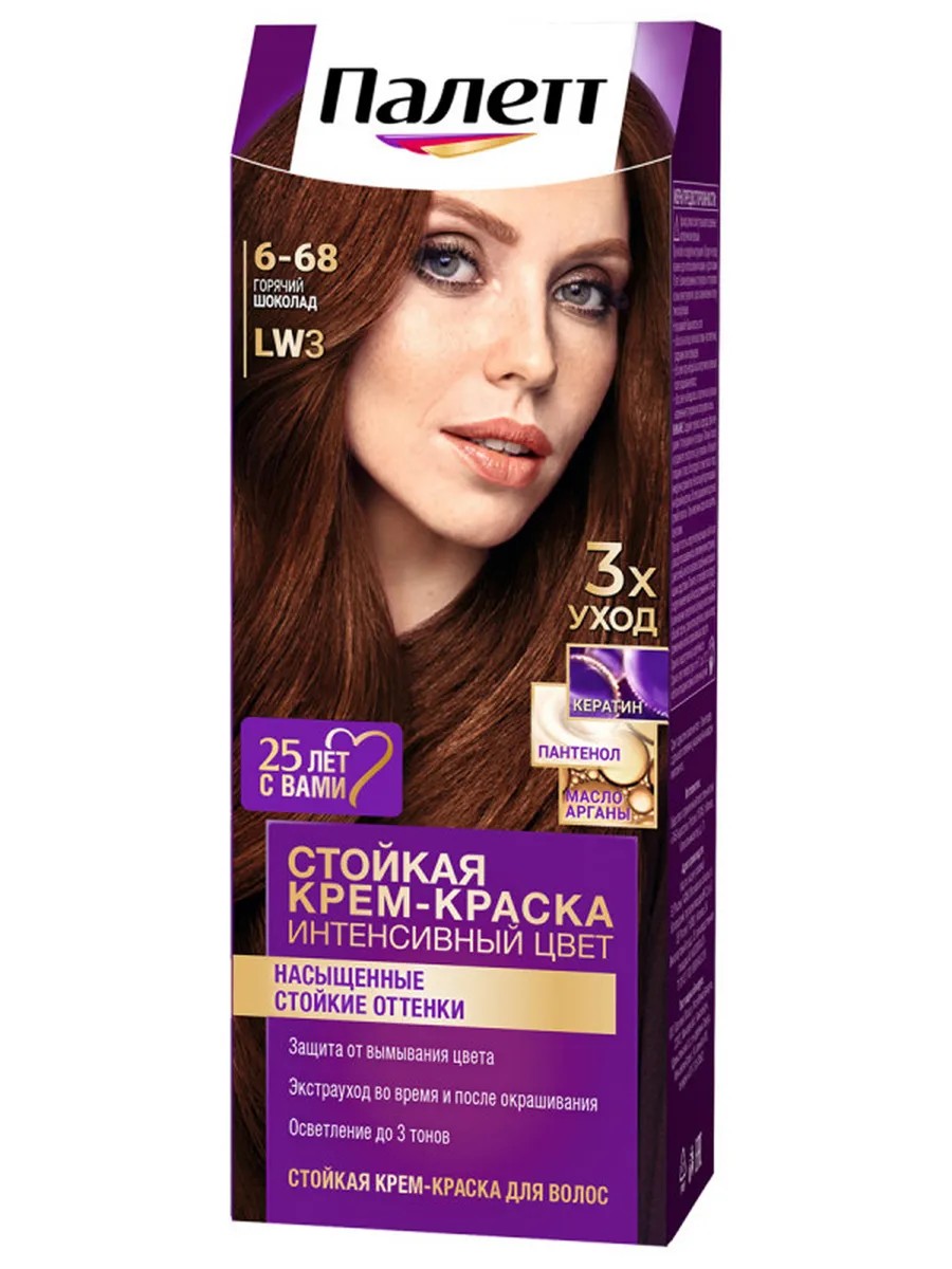 | Комплектация | Краска для волос Палетт, тон LW3 (6-68) Горячий шоколад. |