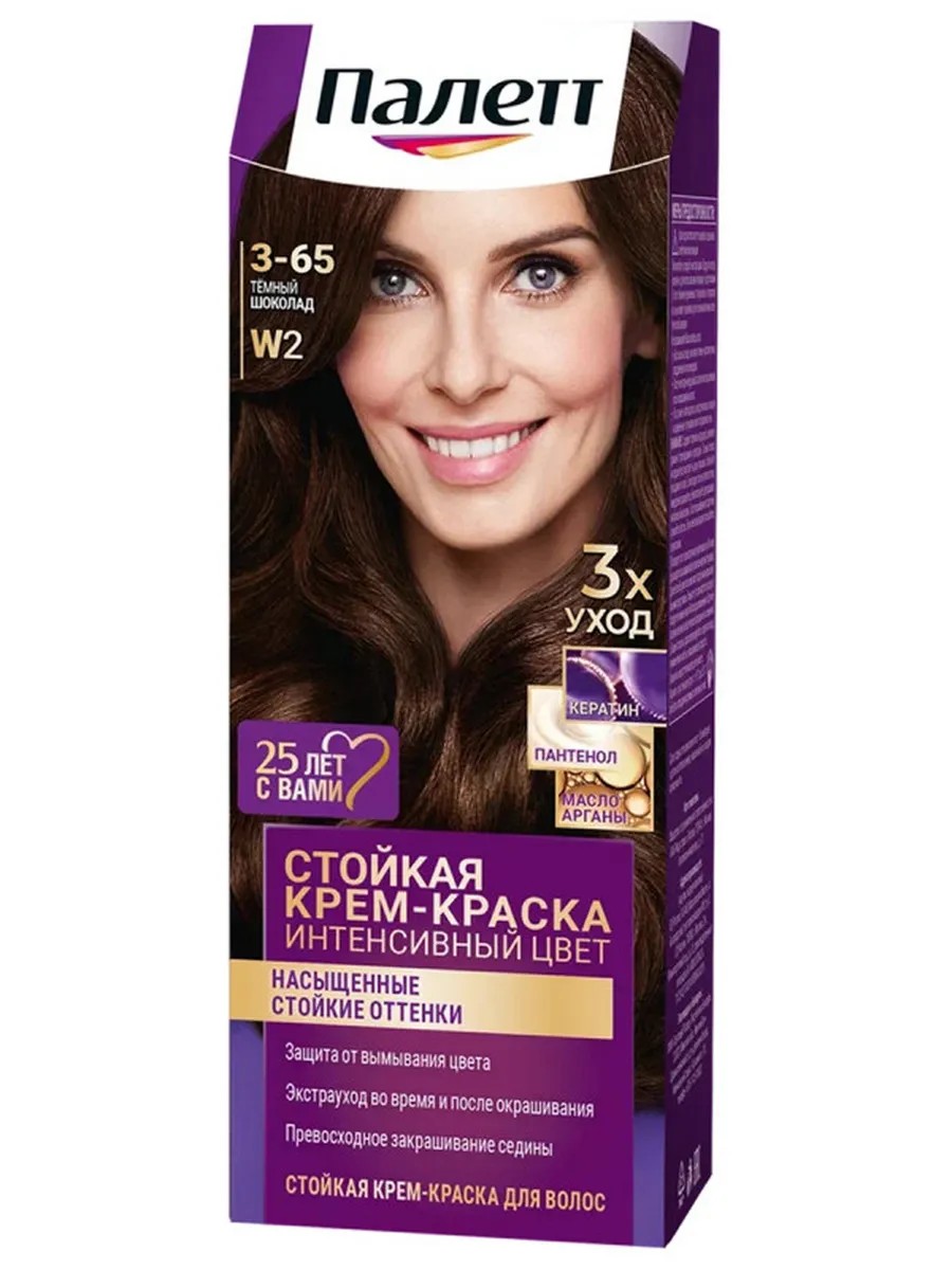Палетт Стойкая крем-краска для волос Интенсивный цвет 3-65 (W2) Темный шоколад, 110 мл.