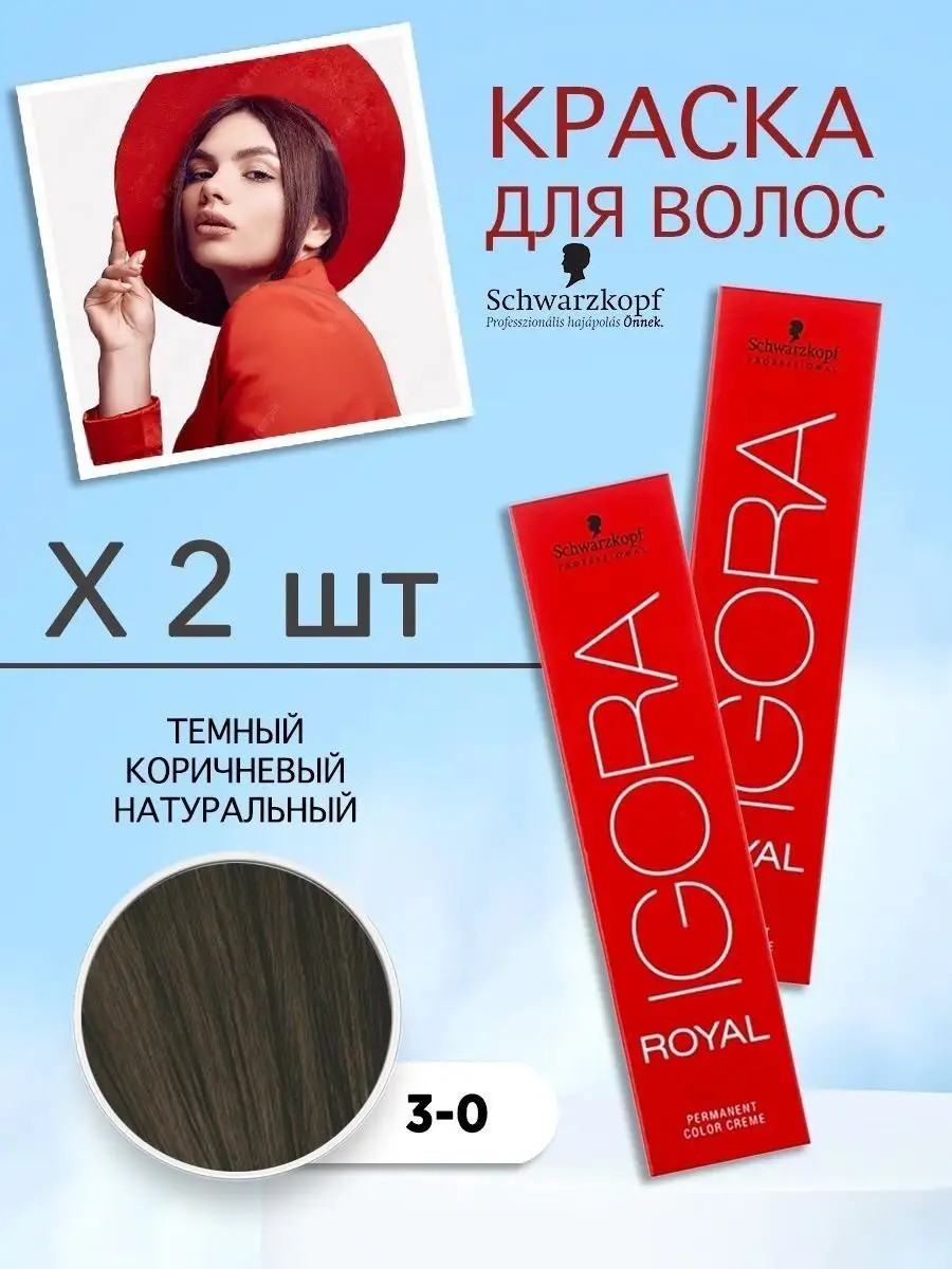 Игора Роял тон 3-0 Темный коричневый натуральный. Набор из двух красок без окислителя. Окислительная эмульсия приобретается отдельно.Натуральные компоненты и гипоаллергенный состав ухаживают за вашими волосами и восстанавливают локоны в процессе окрашивания.Краска для волос Schwarzkopf Professional IGORA ROYAL устойчива к вымыванию цвета. Результат - интенсивные, яркие цвета и равномерное покрытие даже на пористых волосах. Igora обеспечивает 100% покрытии седины. Шварцкопф профессиональный краситель - натурально и эффектно.
