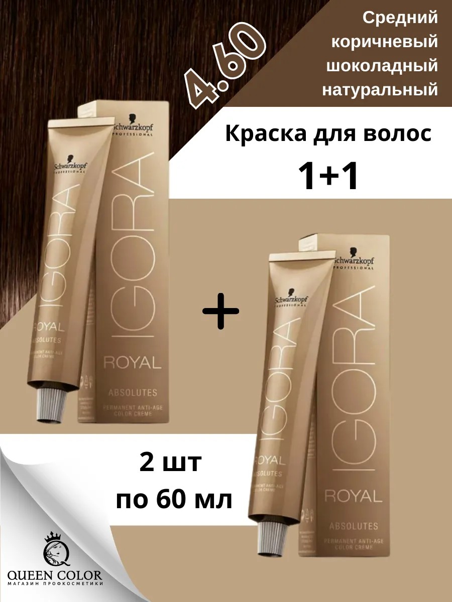 Schwarzkopf professional Igora Royal крем-краска Absolutes 4-60 - 2 шт по 60 мл