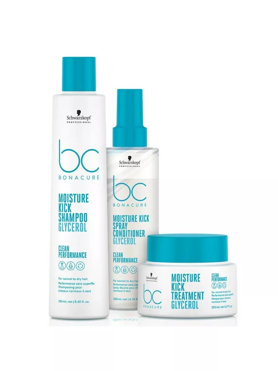 SCHWARZKOPF PROFESSIONAL BONACURE MOIST SH250ML+COND200ML+TRT200ML BAG SET Moisturizing hair set Germany. Contents: Schwarzkopf BC Bonacure Moisture Kick Shampoo 250 ml - 1 pc. Moisturizing shampoo from Bonacure Moisture Kick, specially formulated to gently cleanse and care for normal, dry, wavy or curly hair. Designed to help hair maintain optimal moisture levels and leave a feeling of hydration for up to 48 hours with increased elasticity, does not contain sulfates SLS / SLES, silicones and artificial colors. Vegan hair product. Schwarzkopf BC Bonacure Moisture Kick Conditioner 200 ml - 1 pc. Bonacure Moisture Kick is a lightweight, moisturizing conditioner specially formulated to nourish and hydrate normal, dry, brittle, wavy, or curly hair. The formula helps hair maintain optimal moisture levels and leaves a feeling of hydration for up to 48 hours. Use the spray conditioner to keep hair looking healthy, shiny, and manageable. Schwarzkopf BC Bonacure Moisture Kick Treatment 200 ml - 1 pc. Hair Mask. A long-lasting moisturizer from Bonacure Moisture Kick, specially formulated for normal to dry, brittle, or curly hair. Provides care and adds elasticity. The formula helps hair maintain optimal moisture levels and leaves a feeling of hydration for up to 48 hours with increased elasticity, without silicones and artificial colors. Vegan hair product.