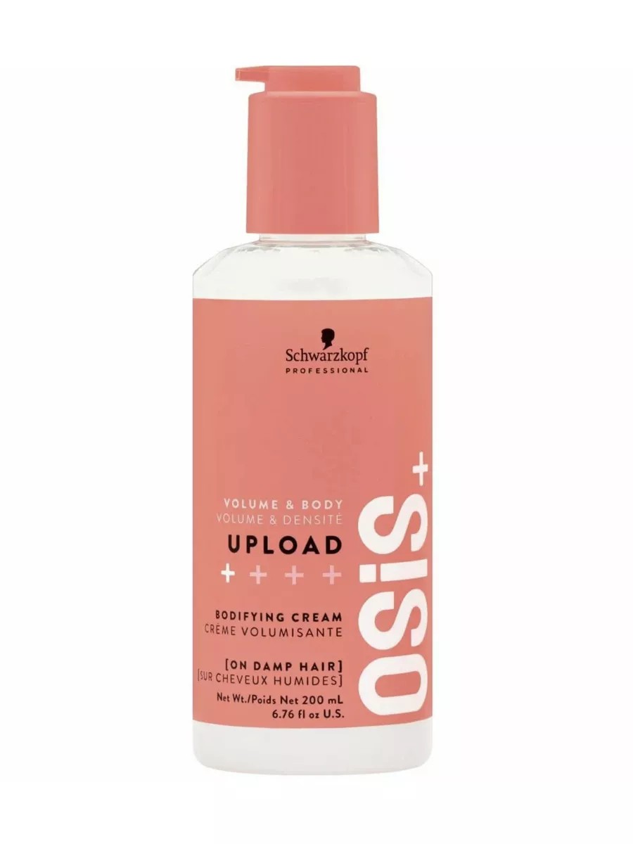 OSIS+ Upload Hair Volumizing Cream 200 ml. Combines styling properties with caring ingredients. Provides long-lasting volume without weighing hair down, with a medium hold. It adds natural shine and a conditioning effect. It thickens curls and protects from heat damage. Provides care and easy combing, and also has restorative properties. It makes hair smooth and manageable. Lightweight and weightless, it doesn't weigh hair down or stick together. Directions: Apply to damp hair and blow-dry.