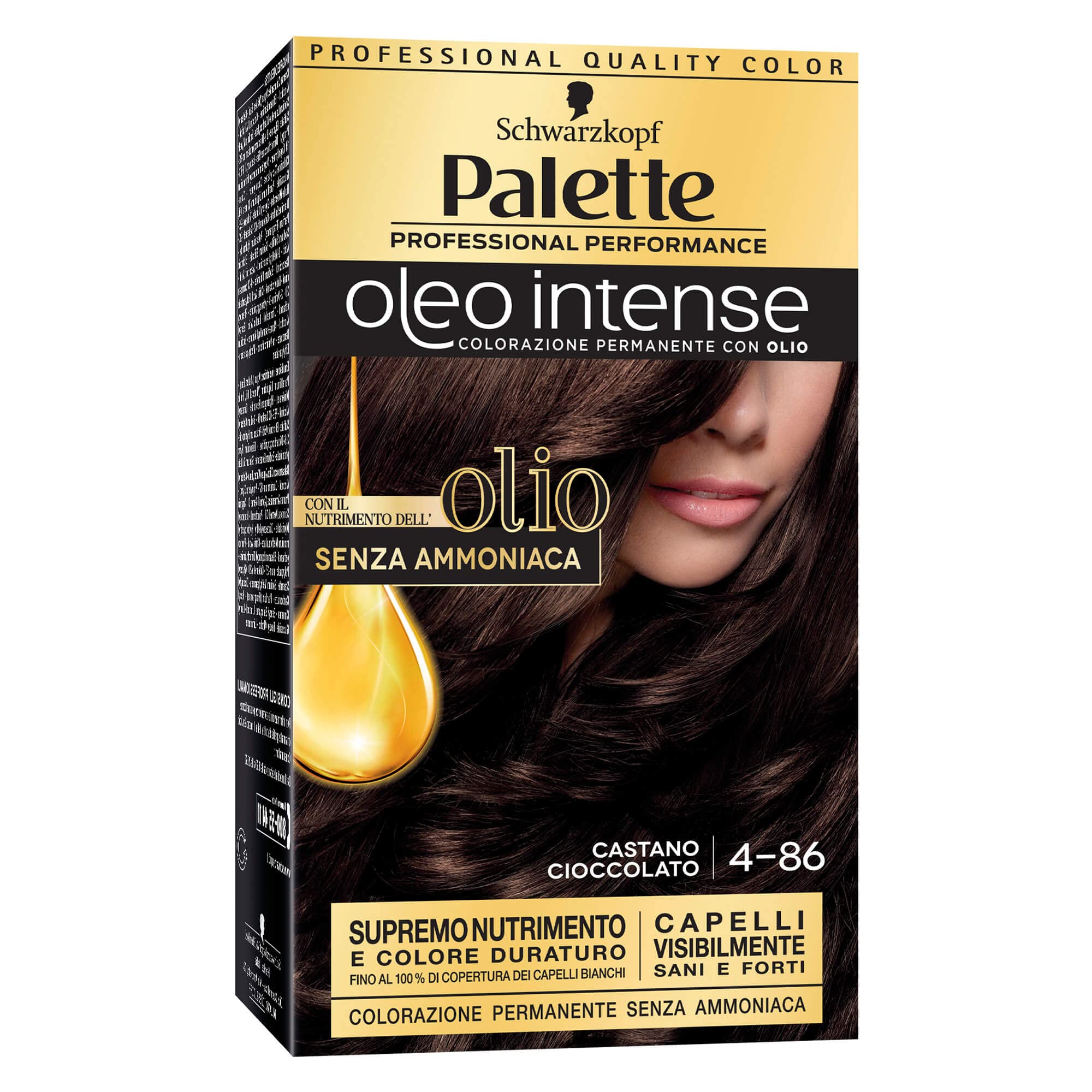 Schwarzkopf Palette Oleo Intense permanent hair colors are designed to give hair intense, vibrant color and provide professional, long-lasting gray coverage. The ammonia-free formula and conditioner containing argan oil, produced according to fair trade principles, nourish the hair, leaving it soft, silky, and shiny. The color pigments penetrate the hair fibers for supreme color intensity and longevity. An ideal permanent shade for vibrant color. INSTRUCTIONS FOR USE Mix the color cream and developer emulsion in the applicator bottle. Apply to dry hair from roots to ends. Leave on for 30 minutes. Rinse thoroughly. Follow with conditioner to nourish hair.Shade: 4-86 Chocolate Brown. Contents: 1 tube of 50ml conditioning color cream, 1 applicator bottle with 50ml developer emulsion, 1 sachet of 15ml conditioner, 1 pair of gloves, and 1 instruction leaflet (French not guaranteed). Formula: The ammonia-free formula contains nourishing argan oil, produced according to fair trade principles and renowned for leaving hair soft, silky, and shiny. Benefits: Perfectly covers gray hair and intensely nourishes the hair after coloring, leaving hair visibly healthy and strong. Schwarzkopf Palette Oleo Intense: Ammonia-free permanent hair color for intense, long-lasting color guarantees professional gray coverage up to 100 .Schwarzkopf, Palette Oleo Intense, Coloration Permanente, Teinte pour Cheveux, Crème Colorante Sans Ammoniaque, Couverture des Cheveux Blancs, Teinte 4-86 Châtain ChocolatDESCRIPTION DU PRODUIT DESCRIPTION DU PRODUIT Les teintes permanentes Schwarzkopf Palette Oleo Intense sont conçues pour donner des couleurs intenses et vives aux cheveux, pour une couverture professionnelle et durable des cheveux blancs. La formule sans ammoniaque et le baume contenant l'huile d'argan, produit selon les principes du commerce équitable nourrit les cheveux et les rend souples, soyeux et lumineux. Les pigments de couleur pénètrent les fibres du cheveu pour une intensité et une durée de vie suprême de la couleur. Une teinte permanente idéale pour une couleur vive. MODE D'EMPLOI Mélanger la crème colorante et l'émulsion révélatrice dans le flacon applicateur. Appliquer sur les cheveux secs en partant des racines jusqu'aux pointes. Laisser poser pendant 30 minutes. Rincer abondamment. baume après-shampooing pour nourrir cheveux.Tonalité : 4-86 châtain chocolat. Contenu de la livraison : 1 tube de crème colorante traitante 50 ml, 1 flacon applicateur avec émulsion révélatrice 50 ml, 1 sachet de baume 15 ml, 1 paire de gants et 1 notice d'instructions (français non garanti). Formule : la formule sans ammoniaque contient de l'huile d'argan nourrissante et produite selon les principes du commerce équitable et réputée pour rendre les cheveux doux, soyeux et lumineux. Avantages : couvre parfaitement les cheveux blancs et nourrit intensément le cheveu après la coloration, ce qui rend les cheveux visiblement sains et forts. Schwarzkopf Palette Oleo Intense : teinte permanente sans ammoniaque pour une couleur intense et durable garantit une couverture professionnelle des cheveux blancs jusqu'à 100 .