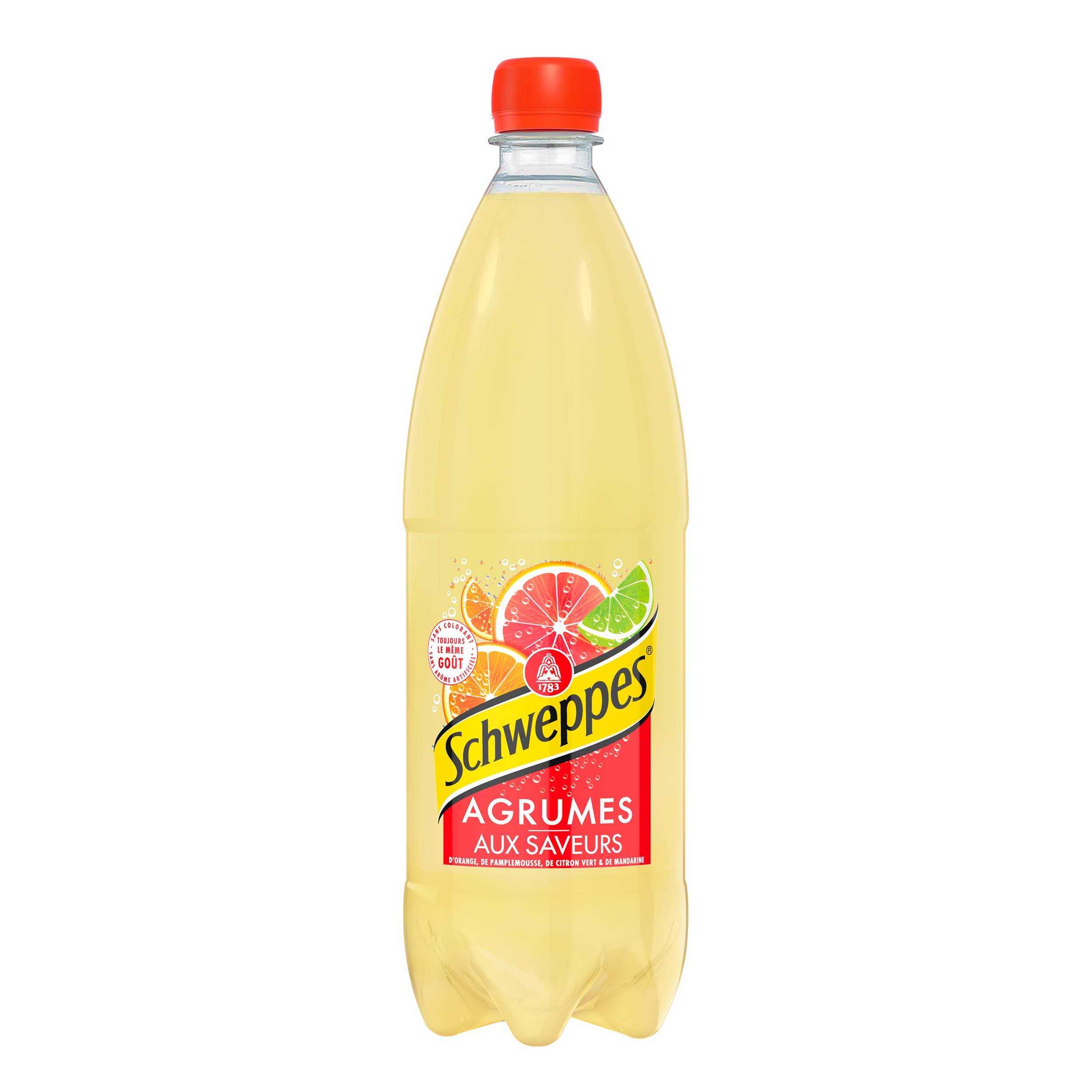 Schweppes, drinks with irresistible tastes. Since its launch in 1783, Schweppes has been the flavor creator par excellence. Schweppes constantly innovates and reworks its existing recipes in order to always better satisfy its consumers, seeking well-being, simplicity, transparency and naturalness. with natural flavors What do you expect? INGREDIENTS Carbonated water, sugar, orange extracts, acidifier: citric acid, preservative: potassium sorbate, natural citrus flavors with other natural flavors, sweeteners: acesulfame K and sucralose, modified starch, antioxidants: ascorbic acid, stabilizer: E445. DIRECTIONS FOR USE Store away from sunlight and heat. DISCLAIMER Non-contractual photography. The above indications are given for information purposes. They are not necessarily exhaustive and cannot replace the information appearing on the product packaging which alone is authentic, and to which you are invited to refer, particularly in the event of food intolerance. SCHWEPPES, What do you expect? . PRACTICAL: In a 1L bottle, to share or take anywhere. REFRESHING: An intensely sparkling drink, to be drunk very cold, for adult palates. FRUITY: No artificial colors or flavors , and always the same taste!. IRRESISTIBLE: With flavors of 4 citrus fruits: orange, grapefruit, lime, and mandarin. Schweppes, des boissons aux goûts irrésistibles. Depuis son lancement en 1783, Schweppes est la marque créatrice de saveurs par excellence. Schweppes innove et retravaille constamment ses recettes existantes afin de satisfaire toujours mieux ses consommateurs, en quête de bien-être, de simplicité, de transparence et de naturalité. avec arômes naturels A quoi vous attendez-vous ? INGRÉDIENTS Eau gazéifiée, sucre, extraits d'orange, acidifiant: acide citrique, conservateur: sorbate de potassium, aromes naturels d'agrumes avec autres aromes naturels, édulcorants: acésulfame K et sucralose, amidon modifié, antioxydants: acide ascorbique, stabilisant: E445. MODE D'EMPLOI A conserver à l'abri du soleil et de la chaleur. CLAUSE DE NON-GARANTIE Photographie non contractuelle. Les indications ci-dessus sont données à titre d'information. Elles ne sont pas forcément exhaustives et ne sauraient se substituer aux informations figurant sur l'emballage du produit qui font seules foi, et auxquelles vous êtes invités à vous reporter, notamment en cas d'intolérance alimentaire. SCHWEPPES, What do you expect ? . PRATIQUE : En bouteille 1L, à partager ou à emporter partout. RAFRAÎCHISSANT : Une boisson intensément pétillante, à boire très fraîche, pour les palais adultes. FRUITÉ : Sans colorant ni arôme artificiel , et toujours le même goût !. IRRÉSISTIBLE : Aux saveurs de 4 agrumes : orange, pamplemousse, citron vert et mandarine.