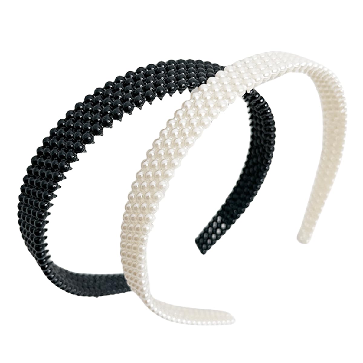 scicent Headbands for Girls 2 Pieces Pearl Beaded Headbands Black and White Hair Hoops Bridal Hairbands Wedding Hair Accessories Hair Band for Washing Face - 16022
