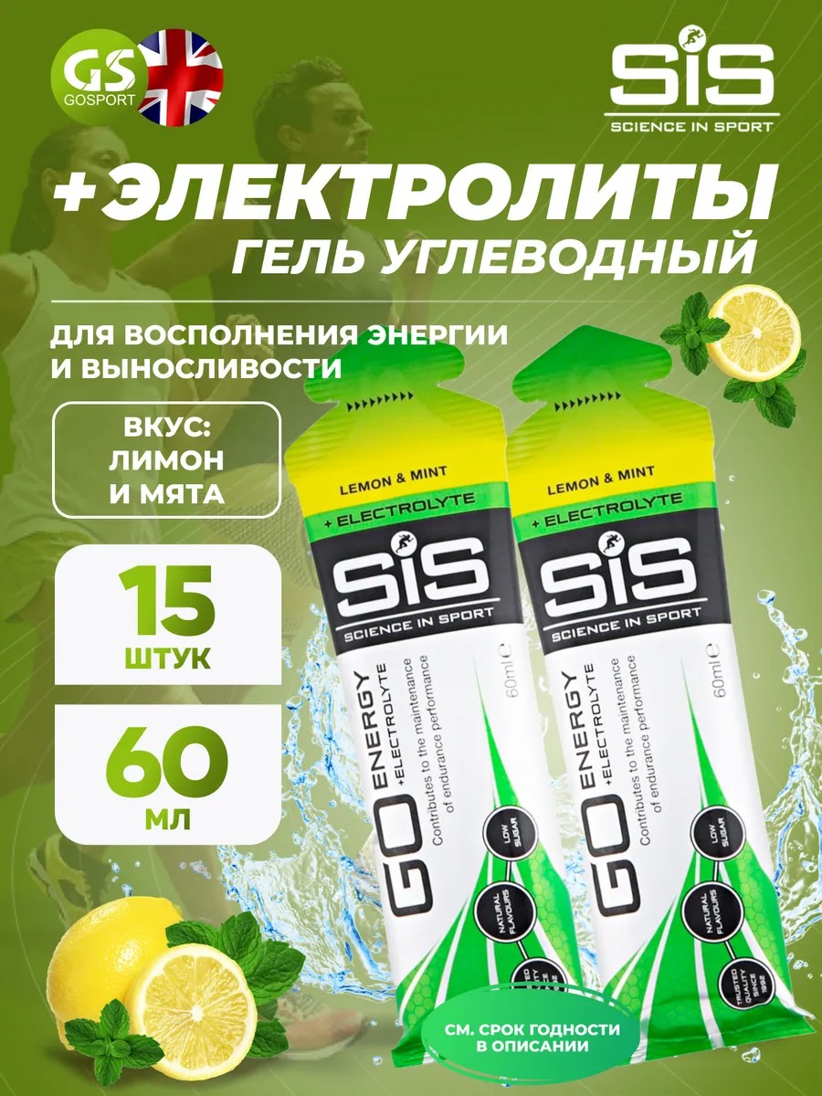 Expires until December 31, 2025. Go Energy + Electrolyte Gels 15 x 60 ml + electrolytes, Lemon-Mint. SiS GO Isotonic Energy Electrolyte Gel, 60 ml, is an isotonic carbohydrate gel with electrolytes for replenishing energy and restoring the balance of essential electrolytes for athletes. Suitable for high-intensity competitions and long, multi-kilometer cycling stages. The gel has a "flowing" consistency and, unlike most gels, does not require water. Designed for use before, during, and after training and competitions. Provides athletes with carbohydrates (22 grams) for energy and replenishes key electrolytes: sodium 118 mg, potassium 9.5 mg, and magnesium 1.5 mg per gel. Thanks to a special formula for rapid absorption, carbohydrates immediately begin to supply the body with the energy it needs. SiS GO Isotonic Energy Electrolyte Gel is WADA tested and is Informed-Sport certified. Features: Energy gel with carbohydrates and electrolytes Replenishes energy and electrolytes Is quickly absorbed and starts working The fluid consistency does not require drinking It is designed for use before, during and after sports Practical packaging is easy to take with you The effectiveness of the product has been proven by thousands of athletes Informed-Sport certified DIRECTIONS FOR USE Aim to consume 1 x GO Energy + Electrolyte Gel and 2 x GO Isotonic Energy Gels per hour during exercise lasting more than 90 minutes. Can also be consumed before training to ensure the availability of electrolytes for fluid absorption. FAQ When is the best time for me to use this gel compared to your other gels? Aim to take 1 GO Isotonic Energy Gel and 2 x GO Isotonic Energy Gels per hour during exercise lasting longer than 90 minutes. 1 x GO Energy + Electrolyte Gel can also be drunk before exercise to ensure electrolytes are available for fluid absorption. Why do I need electrolytes? During exercise, electrolytes are lost through sweating and need to be replaced to maintain fluid balance and prevent dehydration. Do they taste salty? The gels do not have a salty taste and come in refreshing raspberry, lemon, and mint flavors. Are these gels isotonic? GO Energy + Electrolyte Gel is not isotonic, as the addition of electrolytes increases the concentration. Are they "natural"? GO Energy + Electrolyte Gel contains natural flavors. Do they contain aspartame? No, the gels do not contain aspartame. Will they fit in the pocket of my cycling jersey? Yes! All GO gels are lightweight, compact, and fit into jersey pockets.