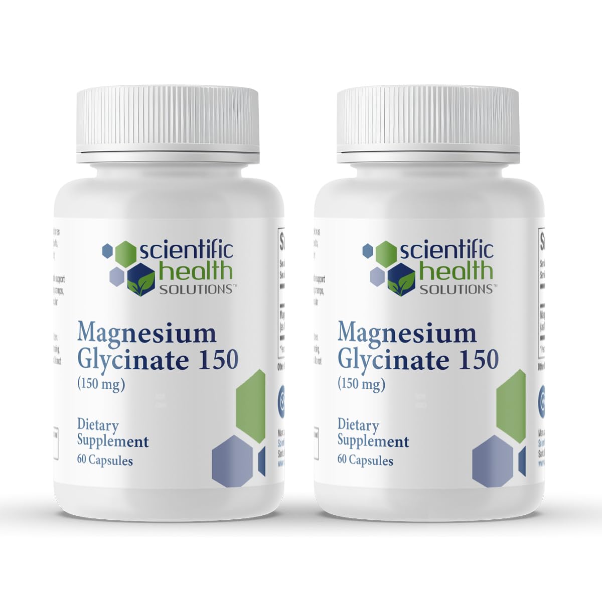 Scientific Health Solutions Magnesium Glycinate 150 mg provides a highly bioavailable, clinically refined form of magnesium designed to support cardiovascular, bone, and muscular health in aging adults. Each vegan capsule delivers gentle, non-laxative absorption to help maintain balanced calcium regulation, healthy heart rhythm, and proper muscle relaxation for relief from leg cramps and stiffness. Magnesium is essential for hundreds of enzymatic processes that influence energy production, nerve signaling, and skeletal strength, yet levels naturally decline with age. Our glycinate form offers superior absorption without digestive discomfort, making it suitable for long-term use in individuals seeking consistent magnesium replenishment. Formulated in GMP-compliant U.S. facilities and verified through third-party testing, this clean, non-GMO supplement supports optimal nutrient balance with precision and purity. These statements have not been evaluated by the Food and Drug Administration. This product is not intended to diagnose, treat, cure, or prevent any disease.