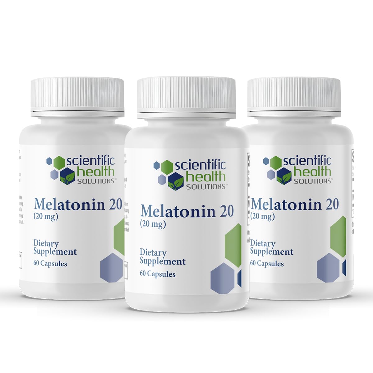 Scientific Health Solutions Melatonin 20mg | Extra Strength Melatonin in Easy-to-Swallow Capsules | Vegan Non-GMO & Gluten-Free | US-Made Extra-Strength (3-Pack)