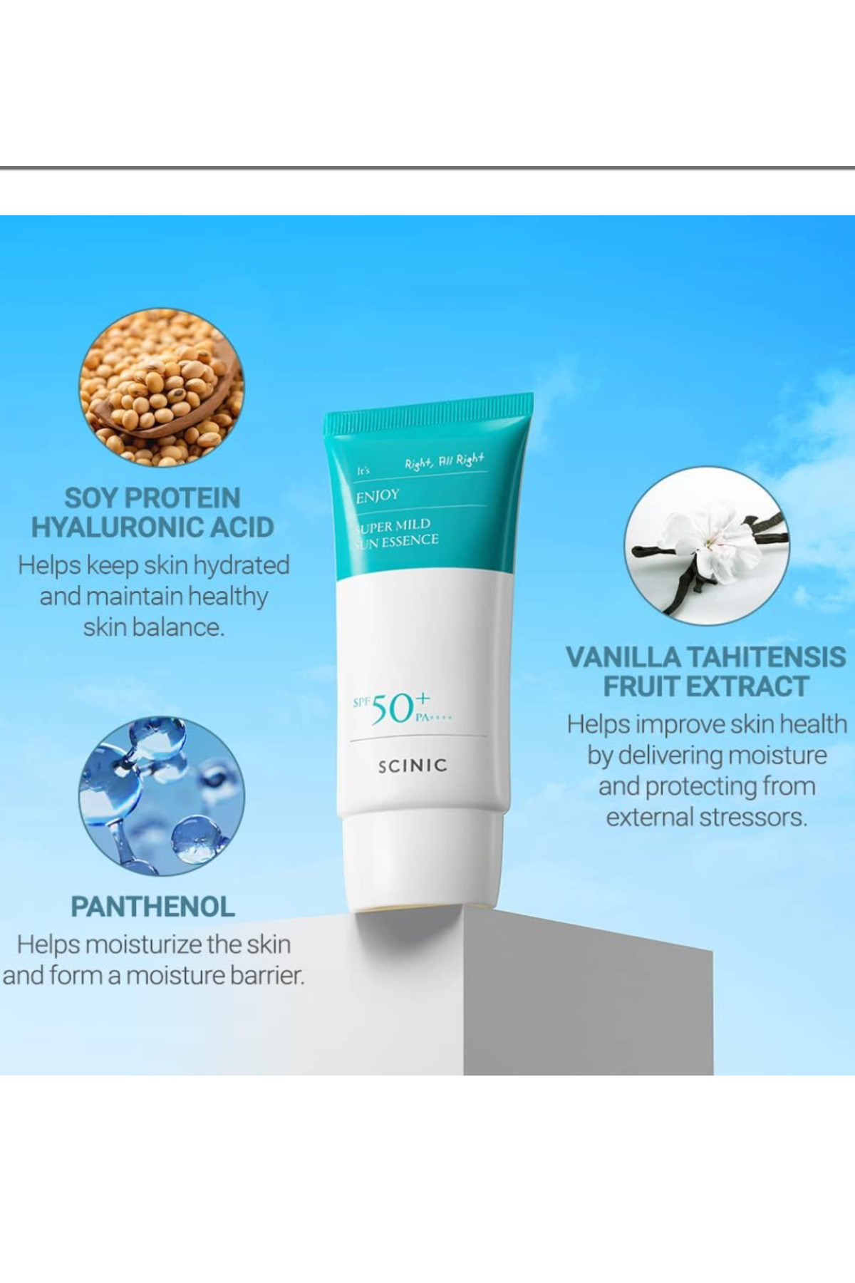 Scinic Enjoy Super Mild Sun Essence SPF50+ PA++++ (50ml) |Korean Skincare KOREA Vegan Sunscreen