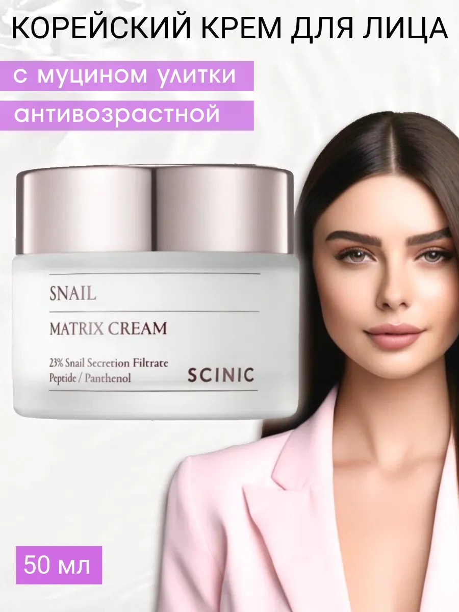 Корейский крем для лица с муцином улитки Scinic Snail Matrix Cream против первых признаков старения обеспечивает тонус и упругость, замедляет процесс увядания кожи, уменьшает глубину и выраженность морщин, а также восстанавливает оптимальный водный баланс.