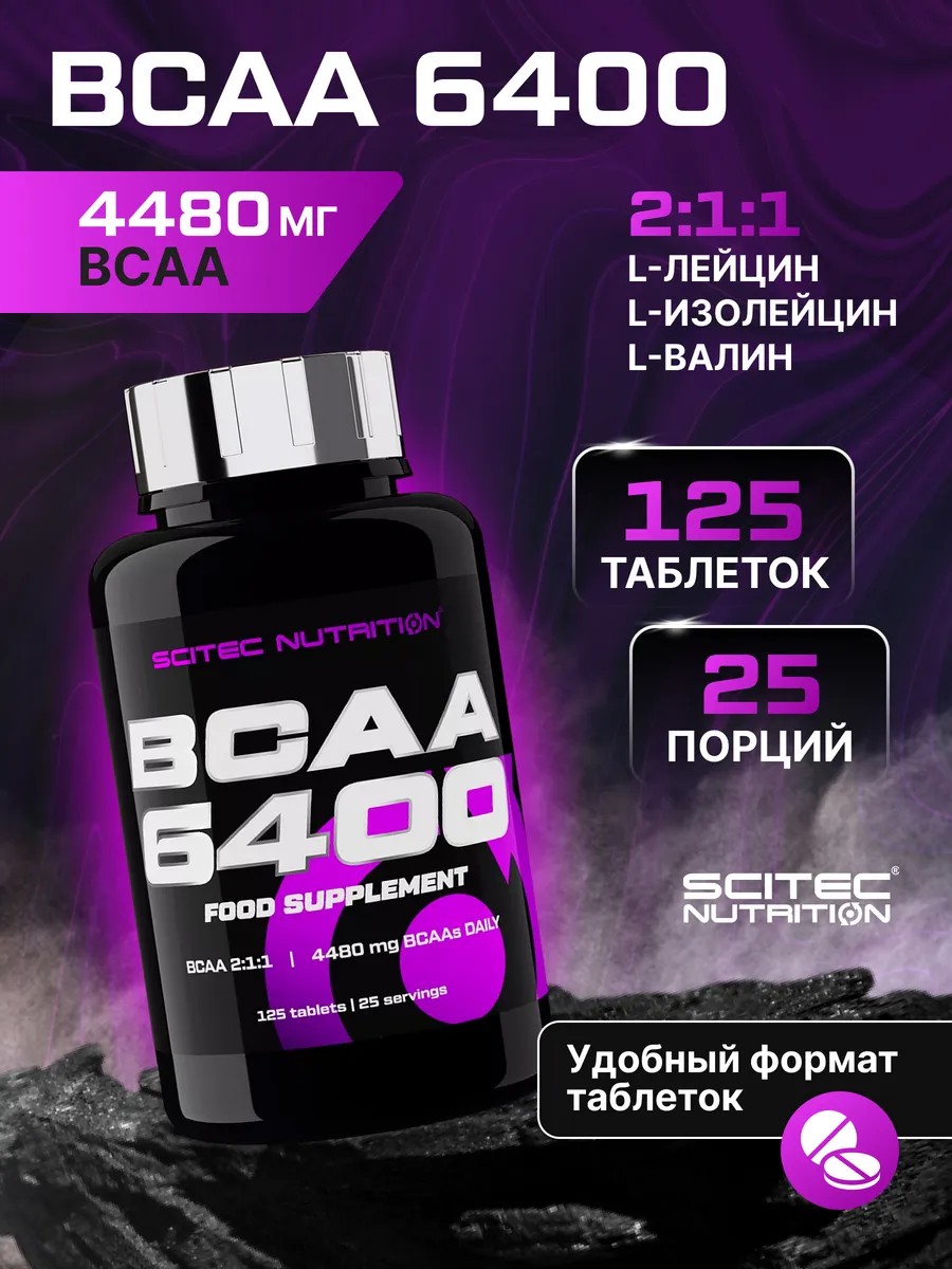 Ищете BCAA в удобной таблетированной форме? BCAA 6400 — это смесь незаменимых аминокислот БЦАА с разветвлённой цепью (лейцин, валин и изолейцин) в формуле 2:1:1. Суточная норма — 5 таблеток = 4480 мг.