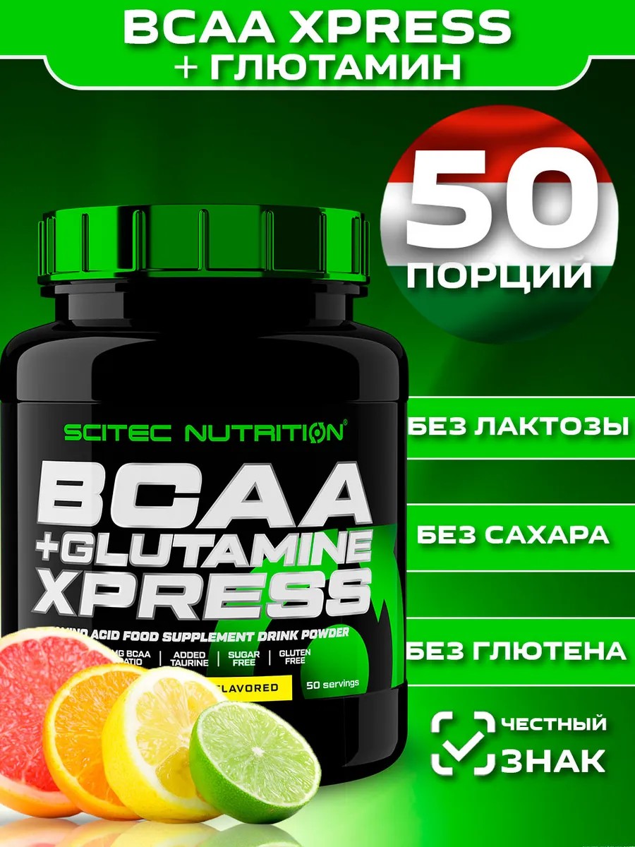 Комплекс добавки BCAA + GLUTAMINE XPRESS Scitec Nutrition состоит из трёх незаменимых аминокислот: L - лейцин, L - валин и L - изолейцин, в оптимальном соотношении 2:1:1. В комплексе каждая из этих кислот обеспечивает быстрое восстановление мышечных волокон и увеличение мышечной массы, а также сжигание жира и повышение энергии, необходимой для эффективных тренировок. БЦАА аминокислоты также полезны для улучшения здоровья, повышения иммунитета, ускорения роста мышц, укрепления всего организма и улучшения качества жизни. Кроме того, спорт пит BCAA+GLUTAMINE XPRESS обогащен таурином и глютамином. Максимальная концентрация и сбалансированный состав пищевой добавки специально разработаны для спортсменов и тех, кто ведет активный образ жизни, способствуя улучшению обмена веществ. Это комплексное спортивное питание, которое подходит для мужчин и женщин, девушек и парней. Препарат необходимый для снижения веса жировой ткани, а также для повышения выносливости и снижения выработки молочной кислоты в мышцах после тренировки. BCAA также улучшает состояние кожи, волос и ногтей, укрепляет иммунную и пищеварительную системы, повышает работоспособность и восстанавливает энергию после интенсивных спортивных тренировок в зале. Всаа поставляется в пластиковой банке объемом 600 г в виде порошка с мерной ложечкой в комплекте. Это отличный спортпит, который можно употреблять перед или во время тренировки для набора мышц, усиленного жиросжигания и улучшения силовой выносливости. Они подходят и для мужской, и для женской аудитории во время тренировок различных групп мышц, а также для сушки, жиросжигания или набора массы. Пищевые добавки и спорт пит Scitec Nutrition это сертифицированные продукты, премиального качества. Без сахара и сои, не содержит глютена, лактозы и диоксида титана.