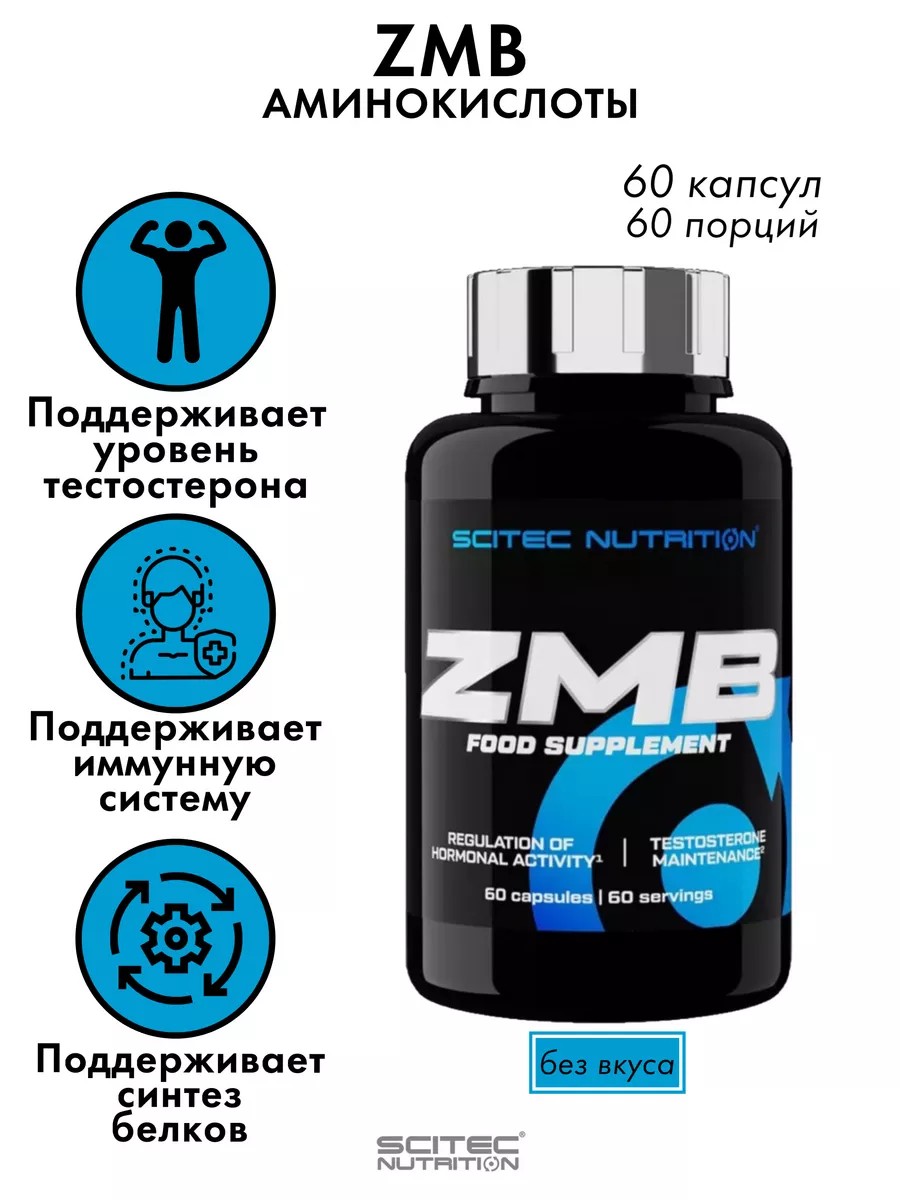 Scitec ZMB6 - этой мощная формула ZMA, которая поможет вам получить не только хороший прирост уровня тестостерона, но так же улучшить качество вашего сна, делая его более глубоким и полноценным. Всего с одной капсулой ZMB6 перед сном, вы проснетесь на следующий день чувствуя себя полным энергии. Когда вы спите, ваш организм восстанавливается, и синтезирует гормоны необходимые для роста мышечной массы.Комплекс ZMA увеличивает уровень тестостерона до 40%, который является главным гормоном для наращивания мышечной массы.Кроме того, вы получите важные минералы и витамины, такие как цинк, магний и витамин В6. Магний играет важную роль со здоровьем костей. Цинк увеличивает физическИй иммунитет, деление клеток, метаболизм белков и синтеза ДНК. Витамин B6 улучшает обмен жиров и углеводов нашего организма, чтобы использовать их в качестве энергии. ПРИМЕНЕНИЕ!!!Принимайте по 2 капсулы в день, на пустой желудок, за 30 минут до сна. Женщинам и подросткам рекомендуется принимать по 1 капсуле!!!