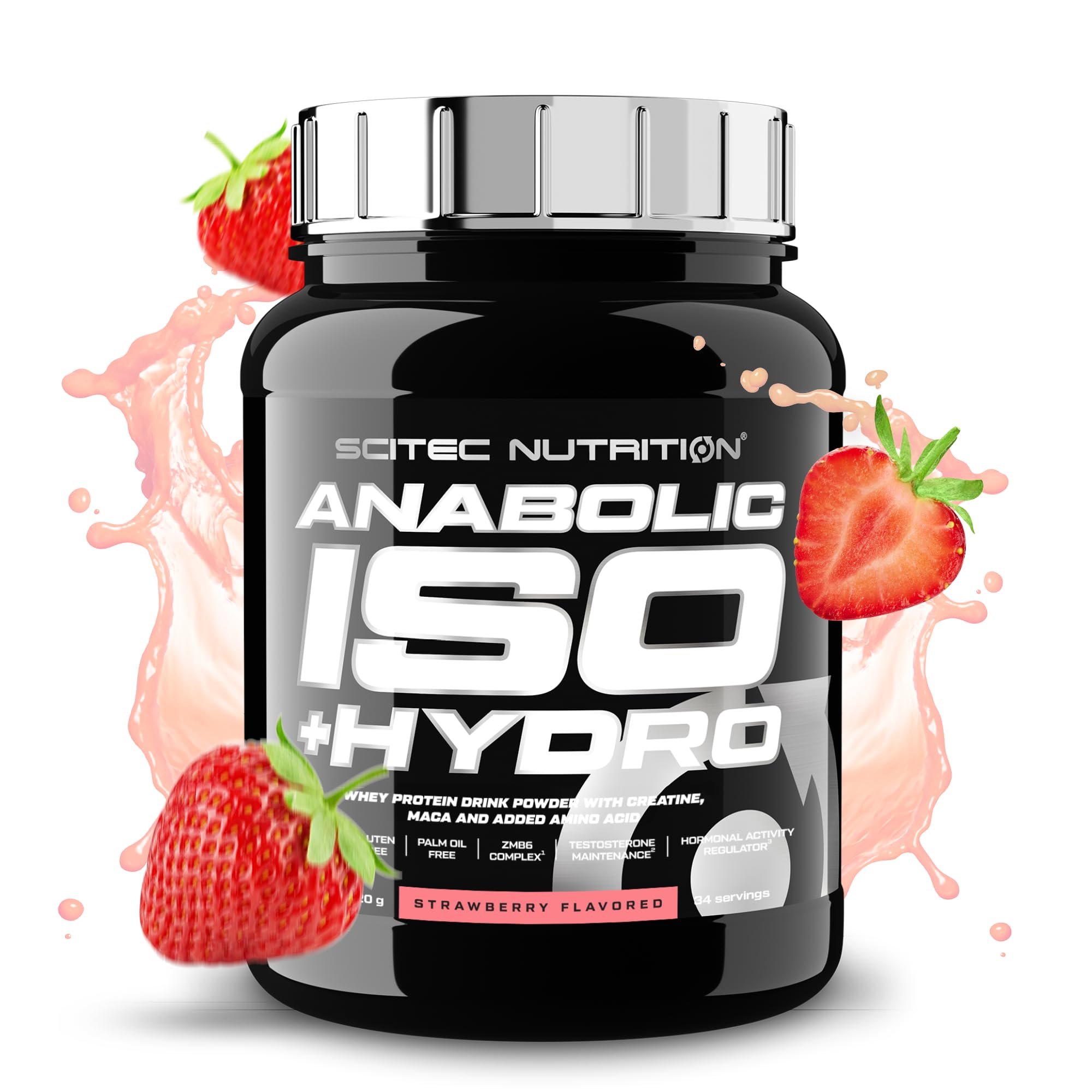 Scitec Nutrition Anabolic Iso+Hydro whey protein blend with creatine Maca and amino acids ZMB6 complex for testosterone maintenance 920 g Strawberry Strawberry 920 g