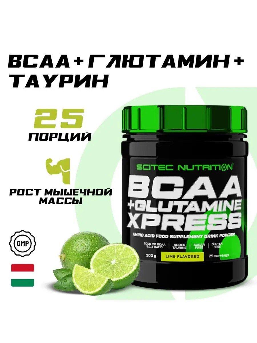 BCAA + GLUTAMINE XPRESS от Scitec Nutrition - это незаменимые аминокислоты ВСАА, глютамин и таурин, объединенные в одной формуле! Легко приготовьте вкусный и освежающий напиток, который усилит эффект вашей тренировки.Лейцин, изолейцин и валин относятся к семейству аминокислот с разветвлённой цепью (ВСАА). Незаменимые аминокислоты не производятся организмом человека, их источником может быть пища или, что намного эффективнее, специальные пищевые добавки. Соотношение аминокислот BCAA лейцин - изолейцин - валин 2:1:1 соответствует соотношению в природных белках (сывороточном и яичном) и является оптимальным для стимулирования роста мышц и предотвращения распада мышечной ткани. Формула обогащена глютамином и таурином, способствующими быстрой регенерации тканей. Высокая доза глютамина и ВСАА (по 5000 мг) и таурина (300мг) в порции обеспечивает эффективное восстановление мышц после интенсивных тренировок и снизят усталость. В 1 порции 12 г:•5000 мг ВCAA 2:1:1 (из них L-лейцин 2500 мг, L-изолейцин 1250 мг, L-валин 1250 мг)•5000 мг L-глутамин •300 мг таурин BCAA + GLUTAMINE XPRESS:•повышает работоспособность во время тренировки;•стимулирует синтез нового белка в мышцах, усиливают рост мышц;•участвует в процессе мышечного восстановления после тренировок;•позволяет сохранить мышечную массу во время снижения веса, работе на рельеф и сушки;•быстро усваивается организмом;•хорошо растворяется в воде.Упаковка 300 г25 порцийБез сахара Без глютенаСертификат GMPХаляльный продуктВкусы на ваш выбор: яблоко, лайм, цитрусовый микс, арбуз, бабл гам, мохито, Лонг Айленд Айс Ти.Рекомендуемая дозировка: смешайте одну порцию (12 г, 1¼ мерной ложки) BCAA + Glutamine Xpress powder с 600 мл холодной воды. Употребляйте до, во время или после тренировки.Предупреждение. Не превышайте рекомендуемую суточную дозу. Потребление этой пищевой добавки не является заменой разнообразного и сбалансированного питания и здорового образа жизни. Храните продукт в недоступном для детей месте.Свидетельство о государственной регистрации: AM.01.01.01.003.R.000327.07.22Биологически активная добавка в пище Scitec Nutrition «БиСиЭйЭй + Глютамин Экспресс» («BCAA + Glutamine Xpress») порошок в банках или пакетах от 12 г до 2000 г со вкусами: «Яблоко» («Apple») или «Бабл Гам» («Bubble Gum») или «Цитрус Микс» («Citrus Mix») или «Лайм» («Lime») или «Лонг Айленд» («Long Island Ice Tea») или «Мохито» («Mojito») или «Арбуз» («Watermelon»).