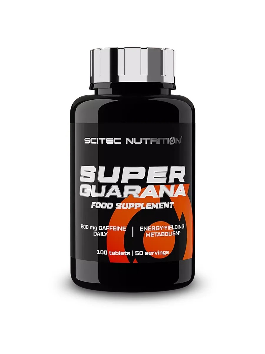 SUPER GUARANA from Scitec Nutrition is an effective supplement for increasing energy, improving focus, and increasing endurance. Each capsule contains 31% guarana seed extract (Paullinia cupana), which provides a natural stimulating effect without the addition of artificial flavors. The supplement also contains calcium carbonate, which helps maintain healthy bones and teeth. SUPER GUARANA is suitable for athletes and anyone seeking to improve their physical and mental performance. Take 2 tablets approximately 30 minutes before training or any other activity. Suitable for vegetarians. Use this product with food as part of a healthy, balanced diet, not as a substitute for one.