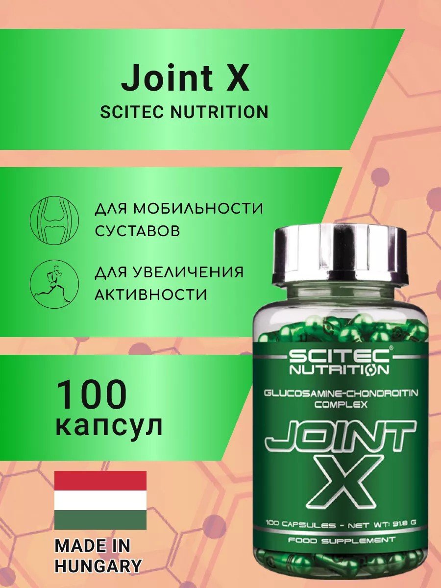 Joint-X Scitec Nutrition - добавка предназначенная для защиты и лечения суставов и позвоночника, действенным компонентом которой являются глюкозамин, хондроитин и метилсульфонилметан. Joint-X способствует достаточному выделению синовидальной жидкости в суставах и позвоночнике, уменьшает воспаление суставов. Joint-X применяется для профилактики травм суставов и лечения их после травм. Глюкозамин и хондроитин – улучшают метаболизм хряща, замедляет его разрушение, способствует нормализации отложения кальция в костях, также участвует в формировании связок и соединительных тканей, уменьшает боли в больных суставах.