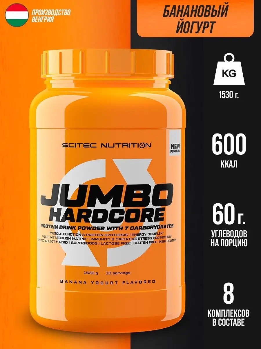 Jumbo Hardcore -это продолжение профессиональной серии гейнеров Jumbo под названием Hardcore. Это гейнер, который можно назвать одним из лучших на рынке спортивного питания. Специалисты Scitec Nutrition еще более усилили протеиновый состав и улучшили состав. Jumbo Hardcore имеет большую калорийность и значительное количество дополнительных ингредиентов.