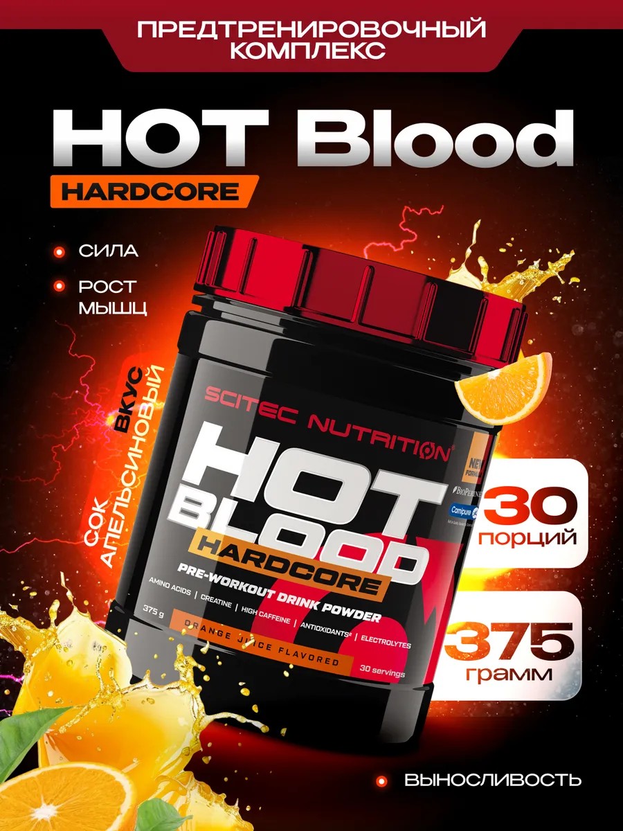 Hot Blood Hardcore – это не просто предтреник, а полноценный спортивный комплекс с адаптогенами, который поможет вам увеличить продуктивность тренировок, почувствовать мощный памп и значительный буст энергии уже после первой порции.