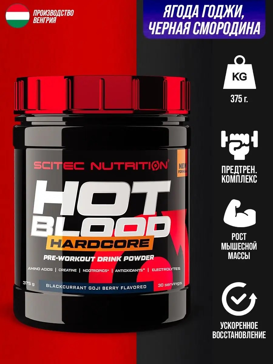 Представляем вашему вниманию особо мощный энергетический предтренировочный комплекс Scitec Hot Blood HARDCORE. Его отличает небывалая эффективность, вы можете убедиться уже после первого скупа, что этот препарат создан для людей, любящих спорт не только за результат, но и за невероятные ощущения в зале. Причём Hot Blood купить вы можете как для занятий с отягощением, так и для кардиотренировок, в том числе высокоинтенсивных. Учитывая оптимально продуманный состав, препарат рекомендуют без опаски даже для тех видов тренинга, в которых пульс повышается до серьёзных показателей.- разгоняет кровь;- увеличивает скорость метаболизма;- придаёт сил;- повышает уровень выносливости;- помогает сконцентрироваться;- улучшает мышечный пампинг Кроме того, этот комплекс хорошо сочетается с ВСАА и с протеиновыми коктейлями: вместе они создают отличный тандем, дающий максимальный результат. Мышцы приобретают точёную форму, уплотняются, быстро и эффективно растут.