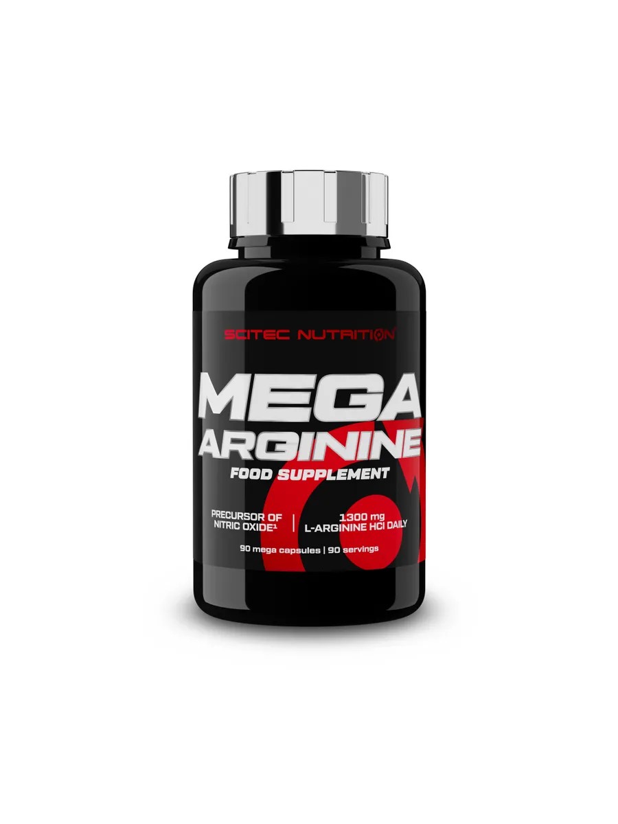 **Mega Arginine by Scitec Nutrition** offers a mega dose of arginine, all in one 1300 mg capsule. It's an excellent aid for building muscle mass and burning fat. Increased nitric oxide significantly increases blood flow to the muscles, providing a better supply of oxygen and nutrients. Mega Arginine stimulates the immune system, promotes rapid recovery, and improves mood. Arginine stimulates the release of growth hormone, increases creatine stores in muscle tissue, accelerates fat metabolism, and helps remove toxins from the body. **Mega Arginine** dilates blood vessels, achieving high levels of production, vascularization, and can increase the level of oxygen transported to the heart and other muscles. Arginine can accelerate the healing process of micro-injuries in muscle tissue and can affect insulin production and sensitivity. Take 1 capsule daily 30 minutes before training.