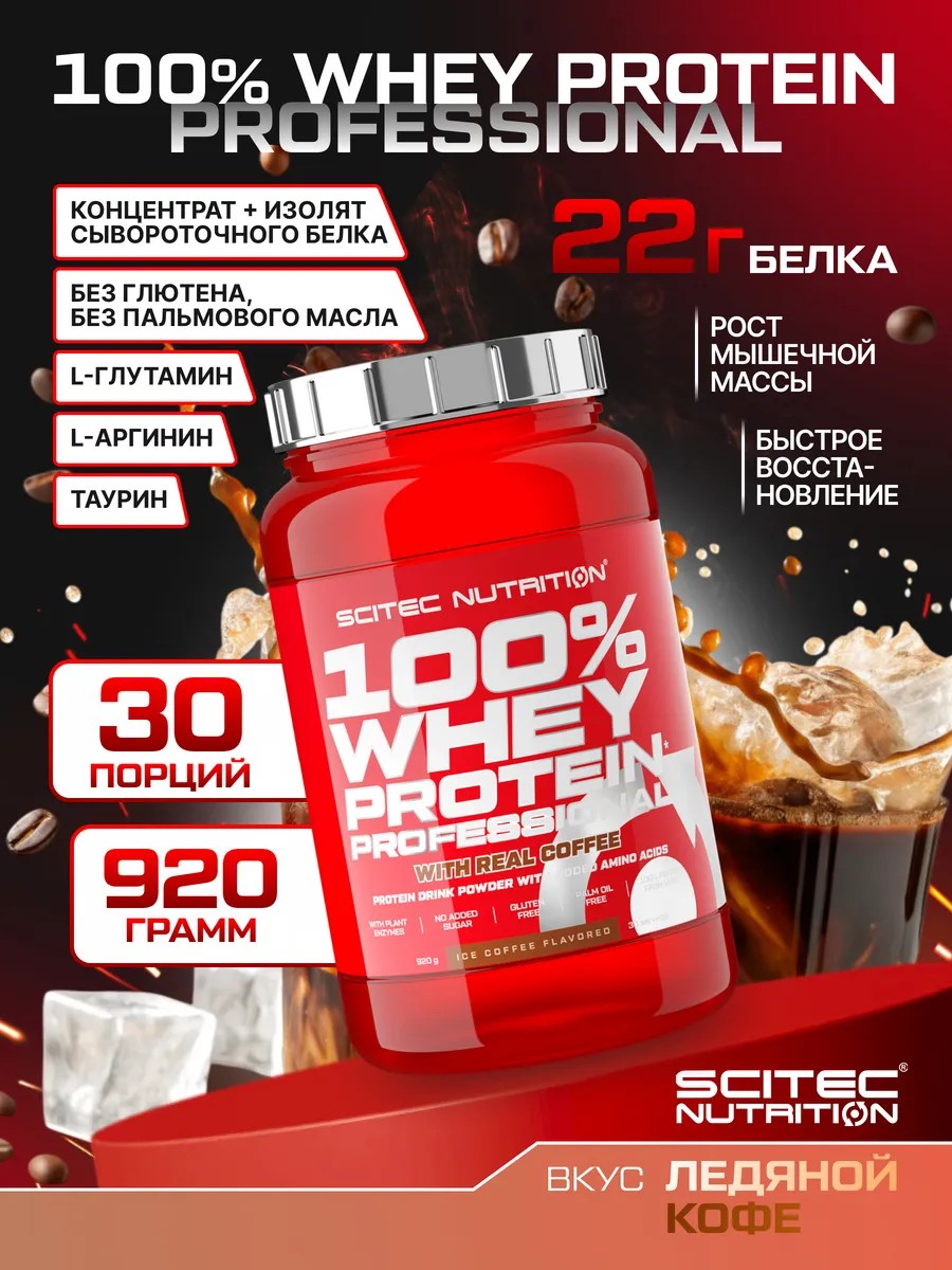 100% Whey Protein Professional от Scitec Nutrition — это высококачественный мультикомпонентный сывороточный протеин, созданный на основе концентрата и изолята сывороточного белка. Благодаря сбалансированной формуле с дополнительными аминокислотами и пищеварительными ферментами, этот белковый порошок идеально подходит как для набора мышечной массы, так и для похудения, сушки и поддержки формы.