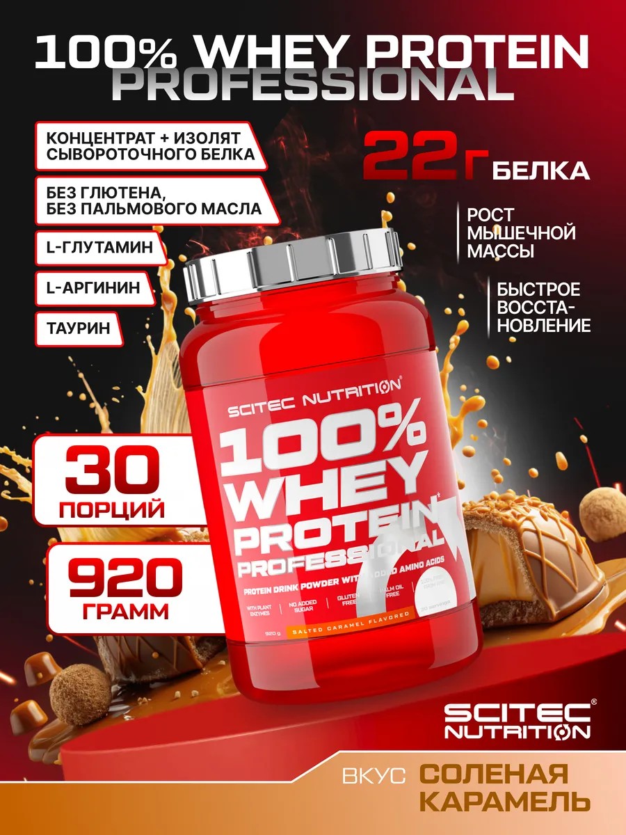 100% Whey Protein Professional от Scitec Nutrition — это высококачественный мультикомпонентный сывороточный протеин, созданный на основе концентрата и изолята сывороточного белка. Благодаря сбалансированной формуле с дополнительными аминокислотами и пищеварительными ферментами, этот белковый порошок идеально подходит как для набора мышечной массы, так и для похудения, сушки и поддержки формы.