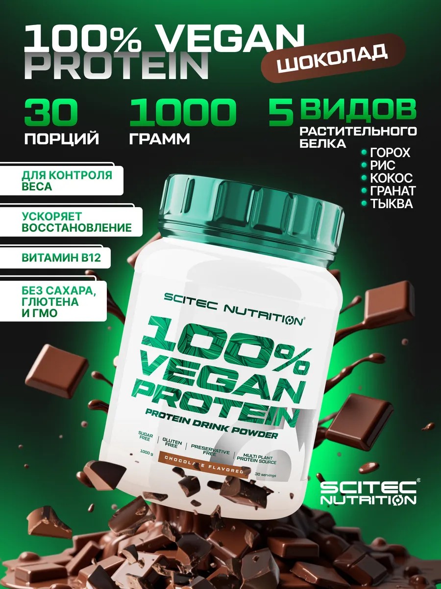Scitec Nutrition Протеин веганский 100% Vegan Protein 1кг шоколад