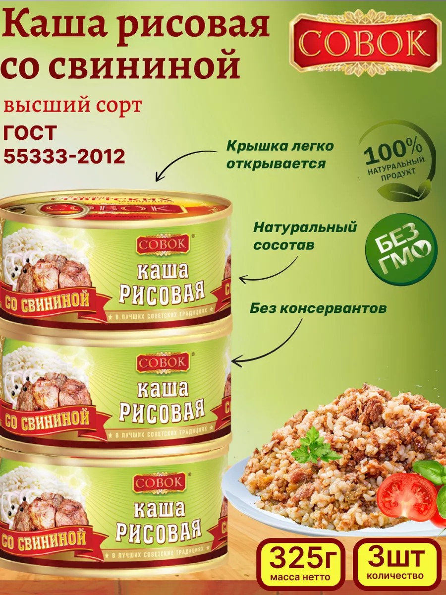 СОВОК Каша рисовая со свининой, 3 шт. по 325г