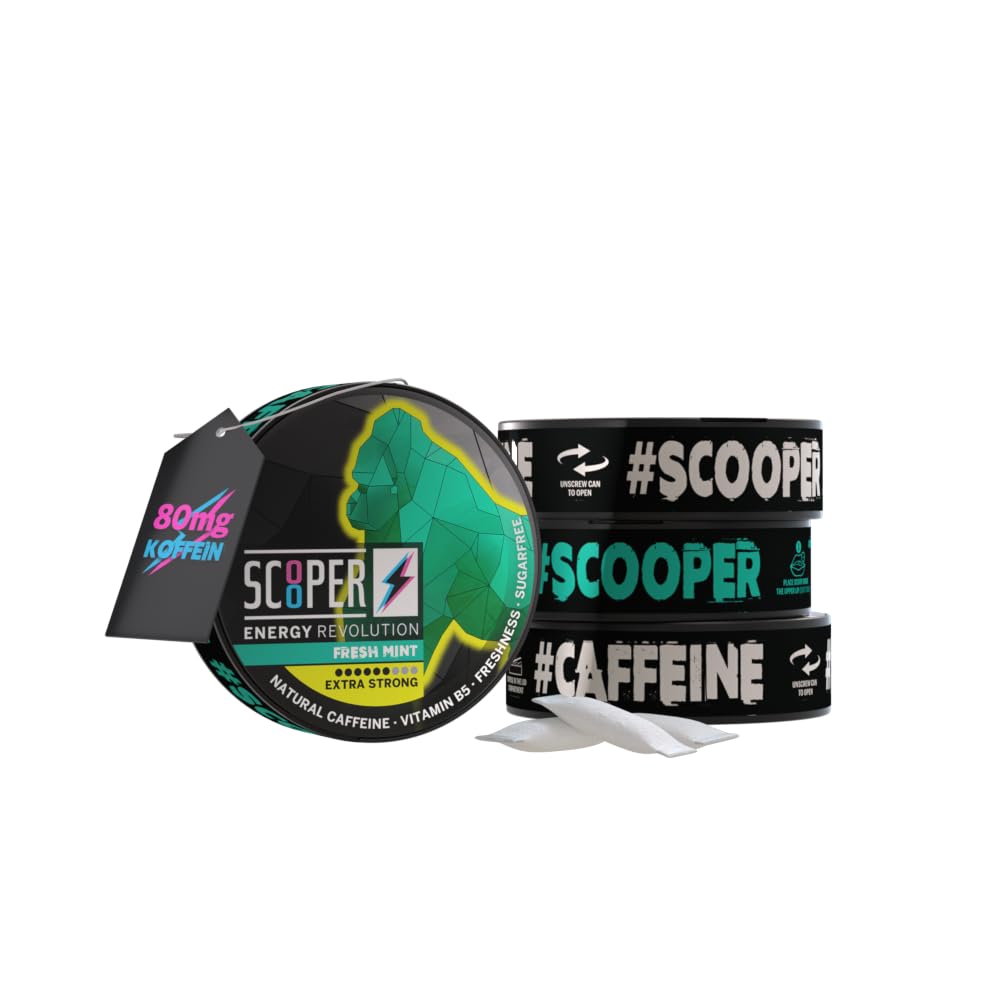 INGREDIENTS Extra Strong Iced Cola: Sweetener (erythritol, xylitol, sucralose), filler (microcrystalline cellulose), caffeine (13.5 ), flavoring, acidity regulator (citric acid), humectant (glycerin), calcium D-pantothenate (vitamin B5), table salt. Extra Strong Fresh Mint: Sweetener (erythritol, xylitol, sucralose), filler (microcrystalline cellulose), caffeine (13.5 ), flavoring, calcium D-pantothenate (vitamin B5), table salt, humectant (glycerin). INSTRUCTIONS FOR USE Slide the spoon under your upper lip and discard it after 10 to 15 minutes in the waste compartment provided in the can lid. Do not swallow. SAFETY WARNING Do not swallow. Dispose of the product in the waste compartment provided in the lid. DISCLAIMER Not recommended for children or pregnant women. Keep out of reach of children. Directions for use: daily. Pack of 2. (160 mg of caffeine). Do not exceed the stated recommended intake. Food supplements should not be used as a substitute for a balanced and varied diet. May have a laxative effect if consumed excessively. Discard the sachet after use. Do not swallow. See more INGREDIENTS Extra Strong Iced Cola: Sweetener (erythritol, xylitol, sucralose), filler (microcrystalline cellulose), caffeine (13.5 ), flavoring, acidity regulator (citric acid), humectant (glycerin), calcium D-pantothenate (vitamin B5), table salt. Extra Strong Fresh Mint: Sweetener (erythritol, xylitol, sucralose), filler (microcrystalline cellulose), caffeine (13.5 ), flavoring, calcium D-pantothenate (vitamin B5), table salt, humectant (glycerin). INSTRUCTIONS FOR USE Slide the spoon under your upper lip and discard it after 10 to 15 minutes in the waste compartment provided in the can lid. Do not swallow. SAFETY WARNING Do not swallow. Dispose of the product in the waste compartment provided in the lid. DISCLAIMER Not recommended for children or pregnant women. Keep out of reach of children. Directions for use: daily. Pack of 2. (160 mg of caffeine). Do not exceed the stated recommended intake. Food supplements should not be used as a substitute for a balanced and varied diet. May have a laxative effect if consumed excessively. Discard the sachet after use. Do not swallow. See moreSCOOPER Energy 80 mg Hype Box Extra Fort I 2 x Cola Glacé, 2 x Menthe Fraîche I 4 x 7,2 gDESCRIPTION DU PRODUIT INGRÉDIENTS Cola glacée extra forte : édulcorant (érythrite, xylitol, sucralose), remplissage (cellulose microcristalline), caféine (13,5 ), arôme, régulateur d'acidité (acide citrique), humectant (glycérine), pantothénate de calcium D (vitamine B5), sel de table, menthe fraîche extra forte : édulcorant (érytalate hrit, xylitol, sucralose), remplissage (cellulose microcristalline), caféine (13,5 ), arôme, pantothénate de calcium D (vitamine B5), sel alimentaire, humectant (glycérine) MODE D'EMPLOI Glissez la cuillère sous la lèvre supérieure et jetez-la après 10 à 15 minutes dans le compartiment à déchets prévu dans le couvercle de la boîte. Ne pas avaler. AVERTISSEMENT DE SÉCURITÉ Ne pas avaler. Jetez le produit dans le compartiment à déchets prévu dans le couvercle. CLAUSE DE NON-GARANTIE Non recommandé pour les enfants et les femmes enceintes. Conserver hors de portée des enfants. Conseils d'utilisation : tous les jours. Lot de 2. (160 mg de caféine). La quantité recommandée indiquée ne doit pas être dépassée. Les compléments alimentaires ne doivent pas être utilisés comme substitut à une alimentation équilibrée et variée. Peut avoir un effet laxatif en cas de consommation excessive. Jetez le sachet après utilisation. Ne pas avaler Voir plus