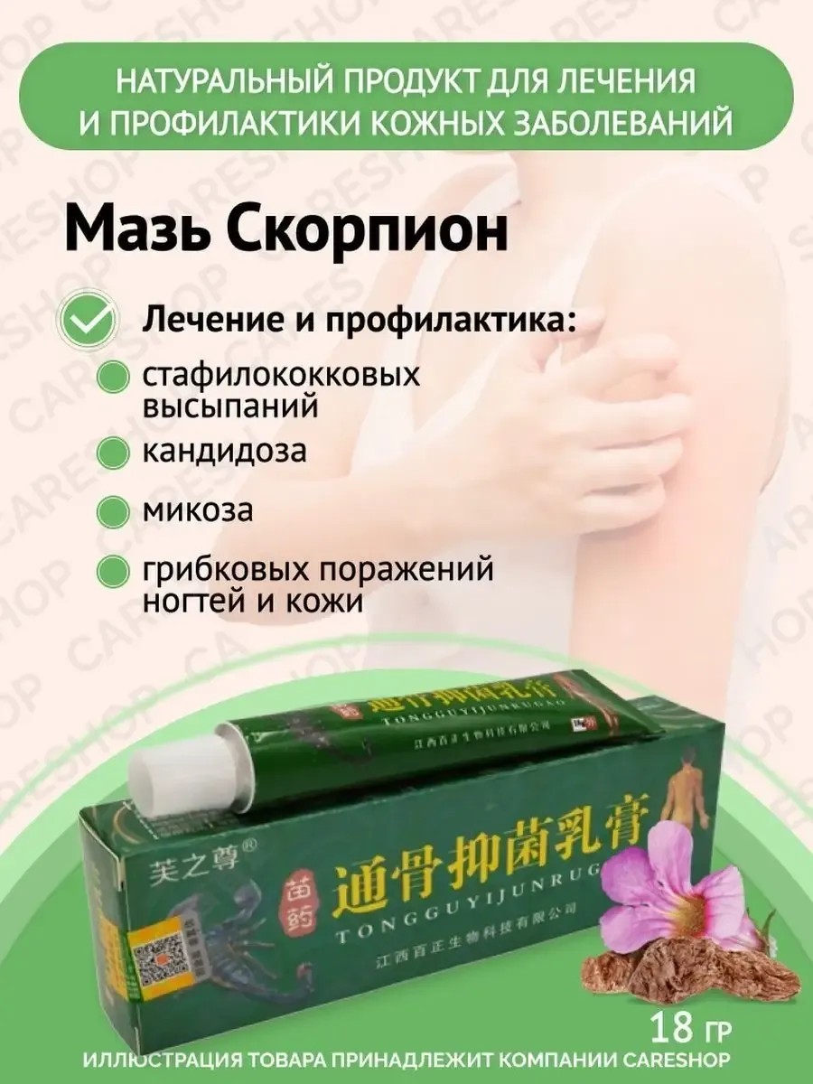 Мазь Скорпион 18 грамм. Чудо мазь! Натуральный продукт для лечения и профилактики кожных заболеваний. Снимает зуд и раздражение кожного покрова, быстро улучшает состояние и внешний вид кожи. В китайской медицине также используется при заболеваниях опорно-двигательного аппарата. Показание к применению**: стафилококковые высыпания, кандидоз, микоз*, грибковые поражения ногтей, коже, суставные, мышечные боли, боли женское, восполение седалищного нерва. Бальзам-мазь с ядом черного скорпиона (аналог тайский бальзам) производит быстрый терапевтический и косметический результат, а также мощное ингибирующее, противовоспалительное, тонизирующее, обезболивающее, вяжущее и антисептическое действие. Устраняет кожные высыпания, обеспечивает стойкое выздоровление, надежно предупреждает повторное появление болезни. Восстанавливает здоровье при заболеваниях опорно-двигательного аппарата, воспалении седалищного нерва, ноющих болях в костях, мышечных судорогах, вывихах и растяжениях мышц*. Способ применения и дозы: Наносить мазь на проблемные участки кожи 1-2 раза в день. Нас можно найти бальзам на травах, для поясницы, товары из китая (товары из тайланда, косметика таиланд), yadah, крем новогодний, бальзам лечебный, от боли в шее, мазь от отеков ног.