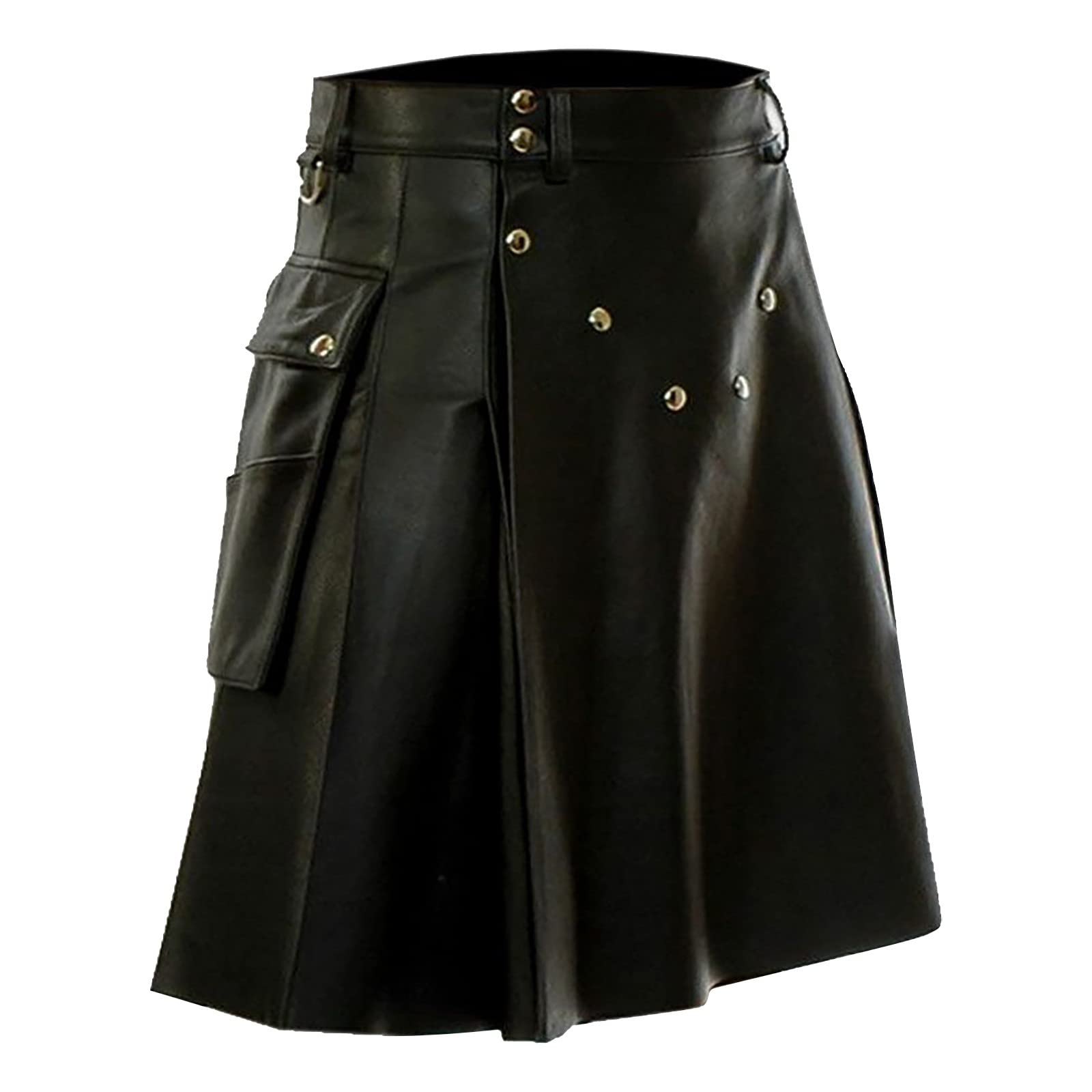 Scottish kilt for men Scottish kilt shoes simple and stylish medieval Scotland fold skirts punk skirts with contrast pockets high waist short skirt slim fit regular black m