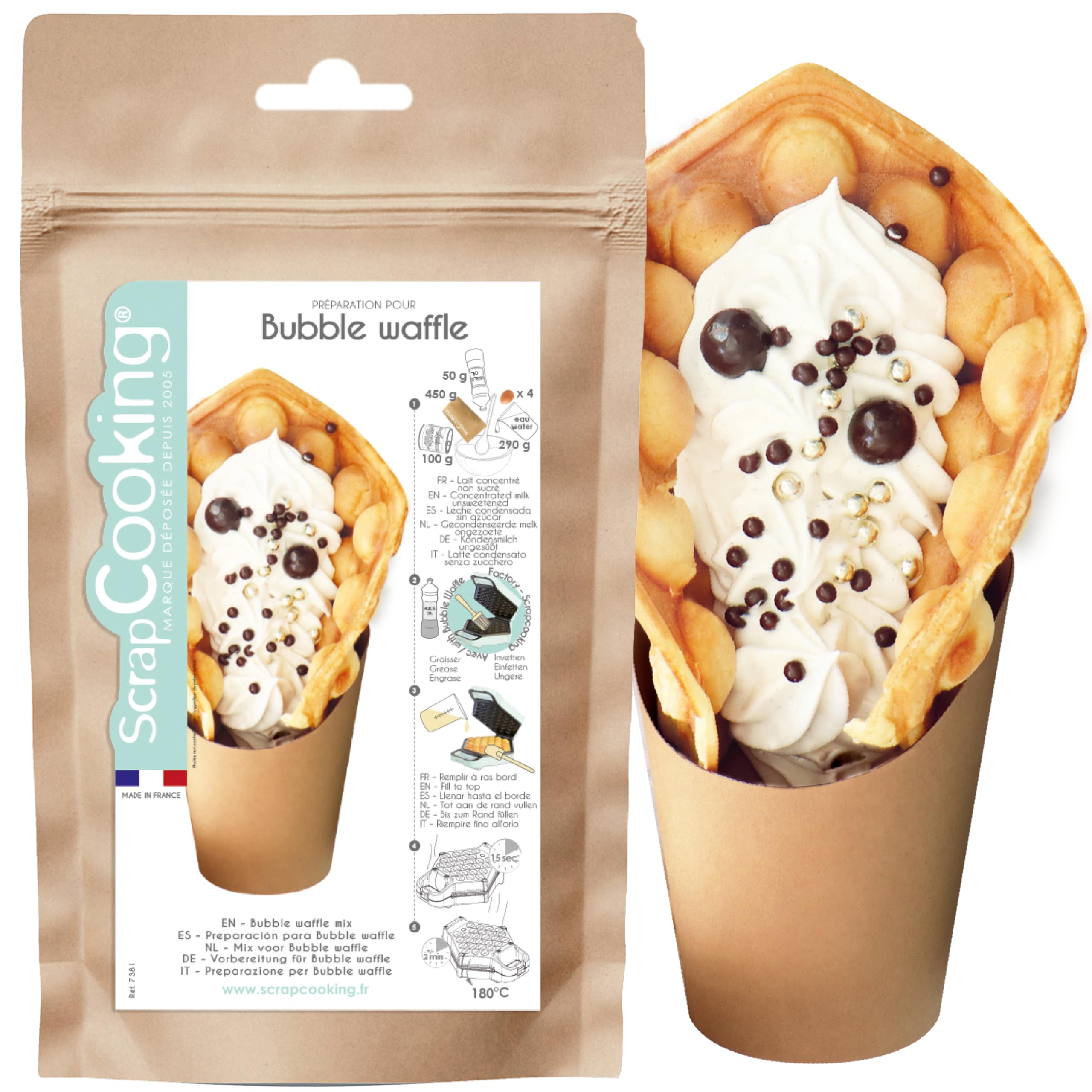 : Quick and easy Bubble Waffle mix. Perfect for a delicious snack! Add the following ingredients to the mix: 4 eggs, 50g oil, 290g water, and 100g milk. Net weight: 450g. Ingredients FR - Waffle Mix - Ingredients: WHEAT flour, sugar, modified starch (potato), whole MILK powder, skimmed MILK powder, stabilizers: E263, E450iii, E339ii, dehydrated glucose syrup, vegetable oil (coconut), vegetable fat (palm kernel), fully hydrogenated vegetable fat (palm kernel), emulsifiers: E472a, E471, salt, MILK protein, colors: E160ai, E160b(ii), flavoring (contains MILK), flavoring, raising agents (potato starch, sodium bicarbonate (E500ii), tartaric acid (E334)), corn starch, vanilla flavoring. May contain traces of EGGS, PEANUTS, SOY, TREE NUTS. Average nutritional values ??per 100g Energy: 1494kJ – 352kcal Fat: 2g - of which saturates: 0.8g Carbohydrate: 75g - of which sugars: 17g Protein: 7.3g Salt: 1.20g. Net weight: 450g. MADE IN FRANCE. Instructions: Mix the waffle mix according to the package instructions. Preheat the waffle iron to 180 C. Pour the mixture onto the iron and cook for 2-3 minutes or until golden brown. Serve hot and enjoy. Safety Warning: May contain traces of nuts, gluten, eggs, milk, sesame seeds, lupin, and soy. See moreMADE IN FRANCE - ScrapCooking is a French brand that has been designing fun and accessible products for everyone since 2005 to help them create and decorate their homemade pastries and sweets. All of our products are conceived and largely manufactured in France, in our workshops in Fondettes (37). RECIPE INCLUDED - A guide is included on the packaging to create delicious bubble waffles. Ideal for use with the ScrapCooking "Bubble Waffle Factory," this mix can be used with any bubble waffle maker. Be sure to adjust the instructions according to your appliance. 450g SIZE - One sachet in an ideal size that allows you to make up to 6 Bubble Waffles. QUICK PREPARATION - Perfect for a sweet treat, simply add 4 eggs, 50g of oil, 290g of water, and 100g of condensed milk to this powder mix, and you're done! A mix that makes the perfect batter for soft and crispy bubble waffles. The 450g pack makes up to 6 bubble waffles. TRENDY WAFFLES - Make your own Bubble Waffles, waffles originating from Hong Kong that are the hottest street food trend right now! Lighter than traditional waffles, they'll delight your taste buds and can be topped with sweet fillings according to your taste and creativity.Description du produit Préparation rapide pour Bubbles waffle. Idéale pour une pause gourmande ! ajouter à la préparation: 4 œufs, 50 g d'huile, 290 g d'eau et 100 g de lait. Poids net: 450 g. Ingrédients FR - Préparation pour gaufres - Ingrédients : farine de BLE, sucre, amidon modifié (pomme de terre), LAIT entier en poudre, LAIT écrémé en poudre, stabilisants : E263, E450iii, E339ii, sirop de glucose déshydraté, huile végétale (noix de coco), matière grasse végétale (palmiste), matière grasse végétale entièrement hydrogénée (palmiste), émulsifiants : E472a, E471, sel, protéine de LAIT, colorants : E160ai, E160b(ii), arôme (contient du LAIT), arôme, poudre à lever (fécule de pomme de terre, bicarbonate de sodium (E500ii), acide tartrique (E334)), amidon de mais, arôme de vanille. Peut contenir des traces de ŒUFS, ARACHIDES, SOJA, FRUITS A COQUE. Valeurs nutritionnelles moyennes pour 100 g Valeur énergétique : 1494kJ – 352 kcal matières grasses : 2 g - dont acides gras saturés : 0,8 g glucides : 75 g - dont sucres : 17 g protéines : 7,3 g sel : 1,20 g. Poids net : 450 g. FABRIQUE EN FRANCE P.when('A').execute(function(A) { A.on('a:expander:toggle_description:toggle:collapse', function(data) { window.scroll(0, data.expander. expander[0].offsetTop-100) }) }) Mode d'emploi Mélangez la préparation des gaufres selon les instructions sur l'emballage. Préchauffer le gaufrier à 180 C. Verser le mélange sur le fer et cuire pendant 2-3 minutes ou jusqu'à ce qu'il soit doré. Servir chaud et déguster. Avertissement De Sûreté Peut contenir des traces de fruits à coque, gluten, œufs, lait, graines de sésame,lupin et soja. Voir plusFABRIQUÉE EN FRANCE - ScrapCooking est une marque française qui conçoit depuis 2005 des produits ludiques et à la portée de tous pour réaliser et embellir ses pâtisseries et douceurs maison. L'ensemble de nos produits sont imaginés et en grande partie fabriqués en France, dans nos ateliers à Fondettes (37). RECETTE INCLUSE - Un guide est inclus sur l'emballage pour créer de succulentes gaufres à bulles. Idéale en utilisation avec le « Bubble Waffle Factory » de ScrapCooking, cette préparation peut s'utiliser avec n'importe quel gaufrier à bulles. Veillez à bien adapter les indications en fonction de votre appareil. FORMAT 450g - Un sachet dans un format idéal qui permet de créer jusqu'à 6 Bubbles Waffles. PRÉPARATION RAPIDE - Idéale pour une pause gourmande, il suffit d'ajouter à cette préparation en poudre 4 œufs, 50g d'huile, 290g d'eau, 100g de lait concentré et le tour est joué ! Un mélange qui permet de réaliser une pâte parfaite pour des gaufres à bulles moelleuses et croustillantes. Format 450g qui permet de créer jusqu'à 6 Bubbles Waffles. DES GAUFRES TENDANCE - Cuisinez vos propres Bubble Waffles, des gaufres originaires de Hong Kong qui sont la grande tendance street-food du moment ! Plus légères que les gaufres traditionnelles, elle raviront vos papilles et s'agrémenteront de garnitures sucrées selon vos goûts et votre créativité.ScrapCooking Bubble Waffles Mix, Alimentaire pour Préparer des Gaufres Bulles de Hong Kong Maison, Pâtisserie, Fabriquée en France, 450g 450 g (Lot de 1)