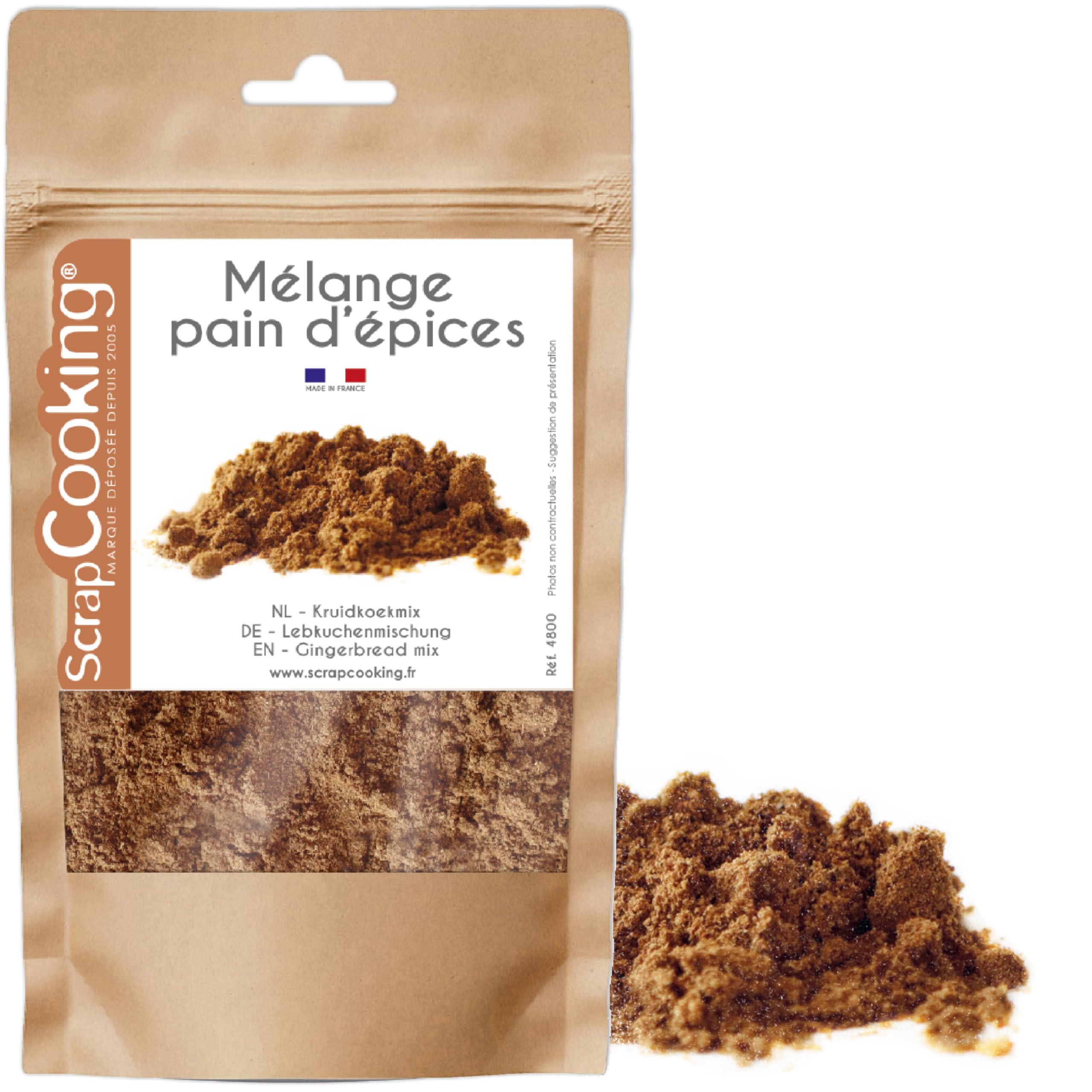 : Ground cinnamon, ground anise, ground ginger, ground cardamom, ground coriander, ground cloves, ground star anise (EU and non-EU). May contain traces of nuts, peanuts, gluten, eggs, milk, sesame seeds, celery, and mustard. Ingredients: Ground cinnamon, ground anise, ground ginger, ground cardamom, ground coriander, ground cloves, ground star anise. May contain traces of nuts, peanuts, gluten, eggs, milk, sesame seeds, celery, and mustard. P.when('A').execute(function(A) { A.on('a:expander:toggle_description:toggle:collapse', function(data) { window.scroll(0, data.expander. expander[0].offsetTop-100) }) }) Safety Warning Not available See moreFRENCH BRAND - ScrapCooking is a French brand that has been designing fun and accessible products for everyone since 2005 to help them make and decorate their homemade pastries and sweets. All of our products are created in France, in our workshops in Fondettes (37). RESEALABLE BAG - Convenient 50g size packaged in a resealable kraft bag (16.5 x 10 x 4.5 cm). Store in a dry place for reuse. Ideal for making gingerbread cake, Christmas cookies, a gingerbread house, and other holiday pastries! ? Powder mix for making delicious homemade gingerbread and other treats.Description du produit cannelle moulue, anis moulu, gingembre moulu, cardamome moulue, coriandre moulue, girofle moulu, badiane moulue (UE et non UE). Peut contenir des traces de FRUITS A COQUE, ARACHIDES, GLUTEN, ŒUFS, LAIT, GRAINES DE SESAME, CELERI, MOUTARDE. Ingrédients Ingrédients : cannelle moulue, anis moulu, gingembre moulu, cardamome moulue, coriandre moulue, girofle moulu, badiane moulue. PEUT CONTENIR DES TRACES DE FRUITS A COQUE, ARACHIDES, GLUTEN, ŒUFS, LAIT, GRAINES DE SESAME, CELERI, MOUTARDE. P.when('A').execute(function(A) { A.on('a:expander:toggle_description:toggle:collapse', function(data) { window.scroll(0, data.expander. expander[0].offsetTop-100) }) }) Avertissement De Sûreté Non disponible Voir plusMARQUE FRANÇAISE - ScrapCooking est une marque française qui conçoit depuis 2005 des produits ludiques et à la portée de tous pour réaliser et embellir ses pâtisseries et douceurs maison. L'ensemble de nos produits sont imaginés en France, dans nos ateliers à Fondettes (37). SACHET REFERMABLE - Pratique, format 50 g conditionné en sachet kraft refermable (16,5 x 10 x 4,5 cm). Se conserve au sec pour être réutilisé pour toute nouvelle occasion. Idéal pour réaliser un gâteau pain d'épices, des biscuits de Noël, une maison en pain d'épices et autres pâtisseries de fin d'année !. ? Mélange en poudre pour la réalisation d'un délicieux pain d'épices maison et autres gourmandises.ScrapCooking - Mélange Pain d'Épices en Poudre 50 g - Pour Pâtisseries, Gâteaux, Cake Maison Pain d'Épices, Biscuits de Noël - Fabriqué en France - Ingrédient Cuisine Cannelle - 4800 1