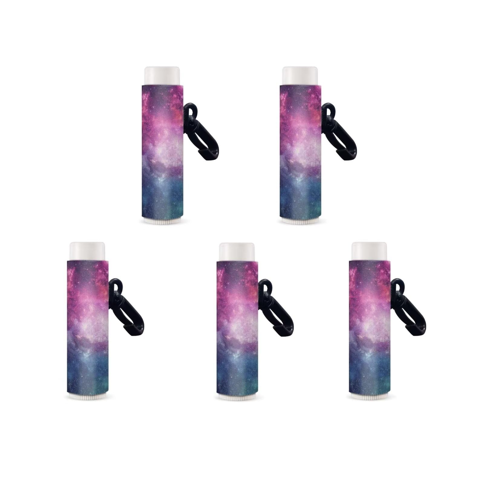 SCRAWLGOD Galaxy Print Lip Balm Holder Keychain Portable Lip Balm Sleeve keychain Chapstick Holder Secure and Nice Hand Feeling Set of 5 Galaxy 5
