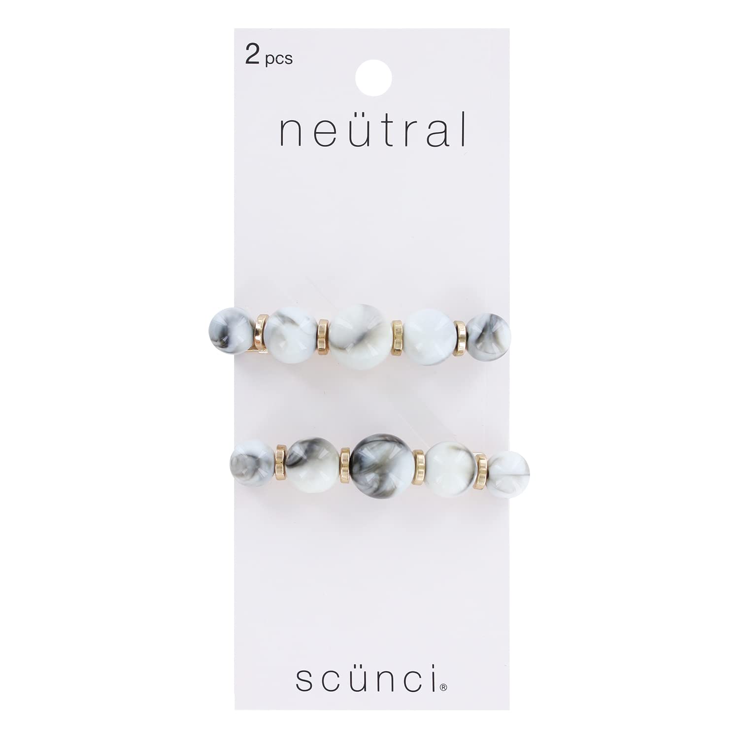 Scunci Neutral Pearl Marble Hair Barrettes 2-Piece
