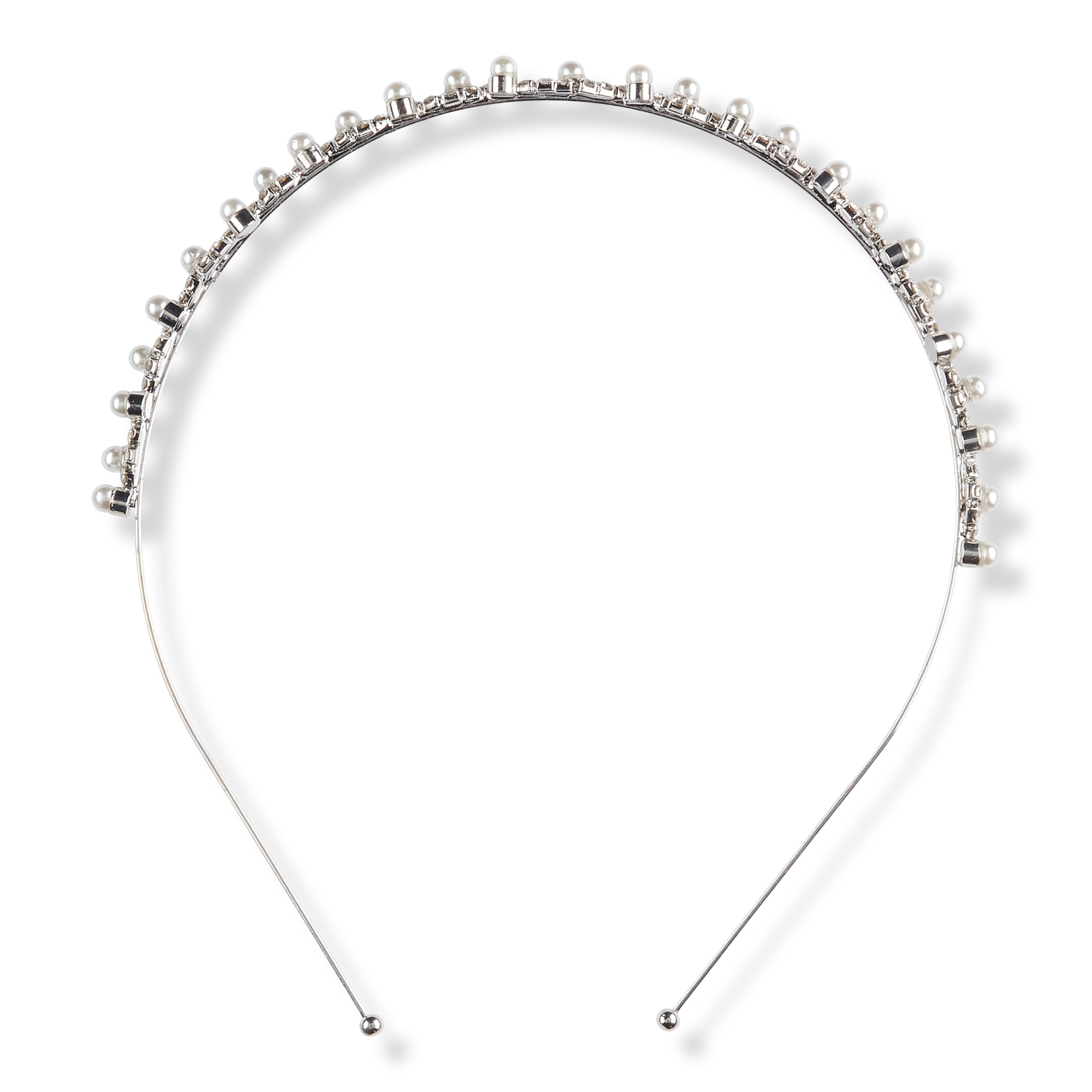 Perfect for dressing up any outfit, this stylish Scünci Pearl Rhinestone Headband with silver finish makes a statement with a glam pearl- and rhinestone-studded design.